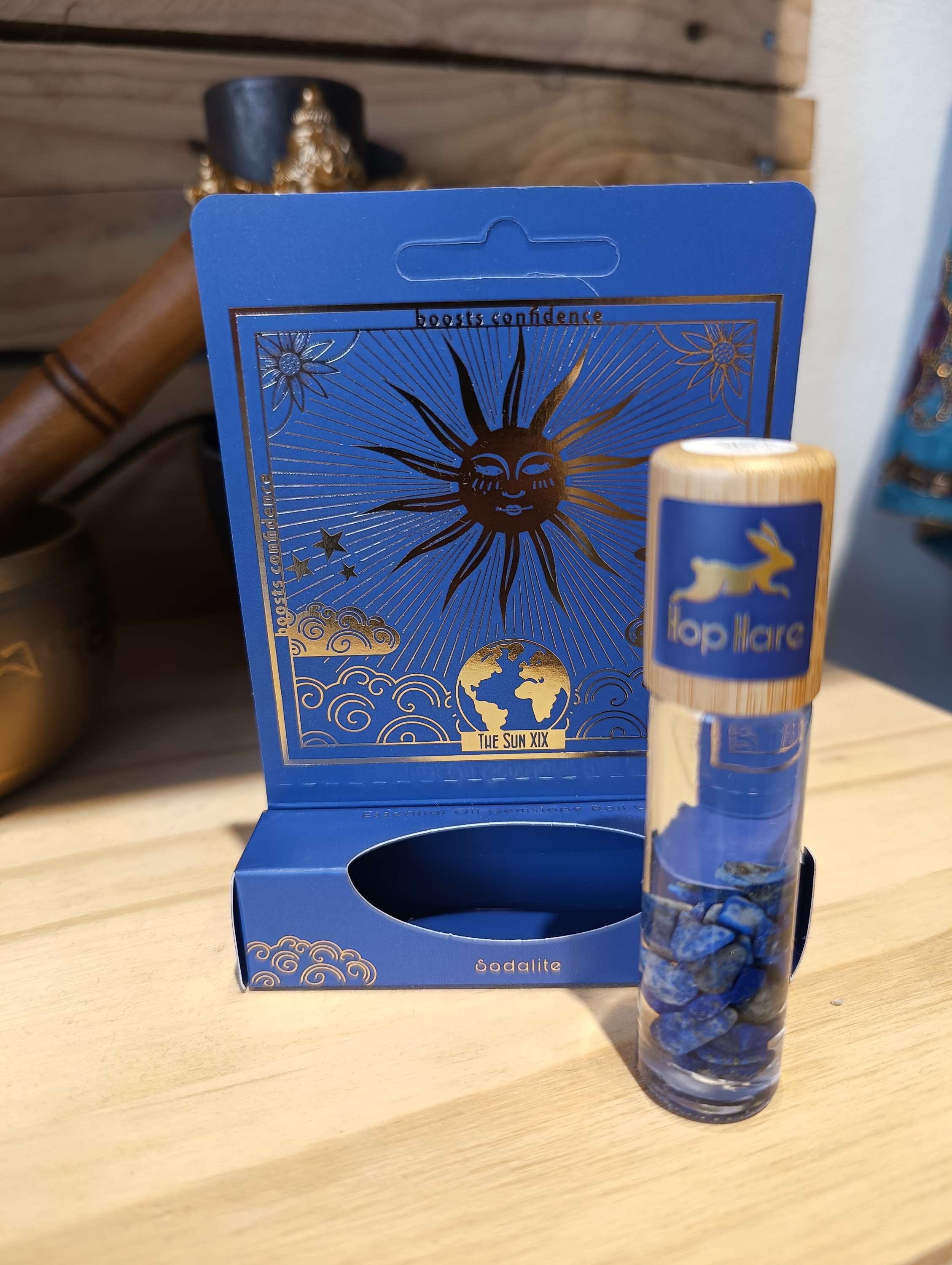 O roll on O Sol combina as propriedades curativas da sodalita, conhecida por promover a comunicação clara e a alegria interior, com os benéficos terapêuticos dos óleos essenciais. A sodalita é uma pedra de paz e harmonia, que ajuda a estimular a criatividade e a expressão verbal. Combinado com os óleos essenciais, este roll on é uma ferramenta poderosa para aumentara positividade, a vitalidade e a autoexpressão. Este roll on é perfeito para uso diário, basta aplicar nos pulsos, pescoço ou pontos de pulsação sempre que precisar de um impulso de energia e alegria.