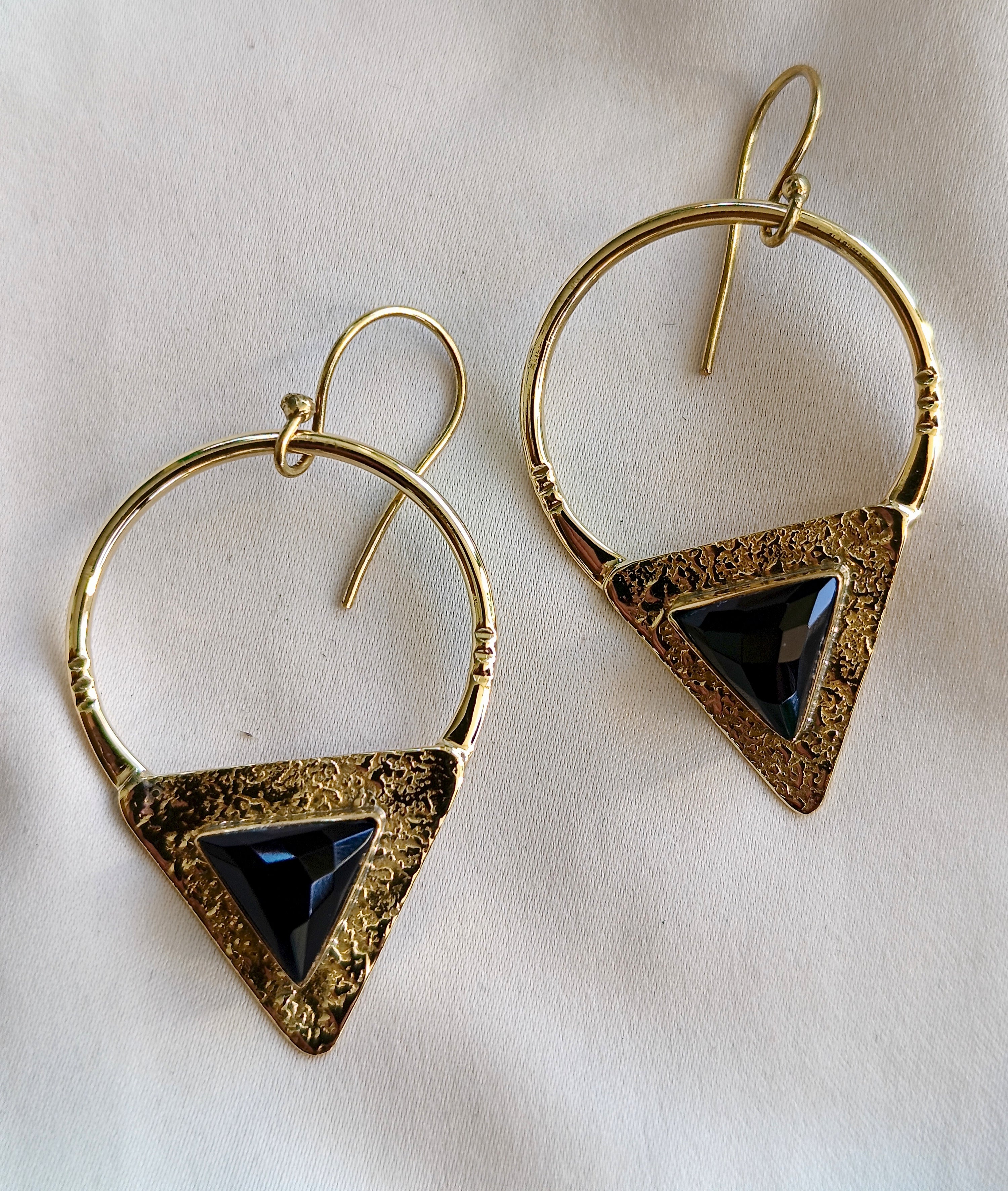 Brincos com inspiração étnica, com um design contemporâneo e texturas marcantes que conferem personalidade e elegância.