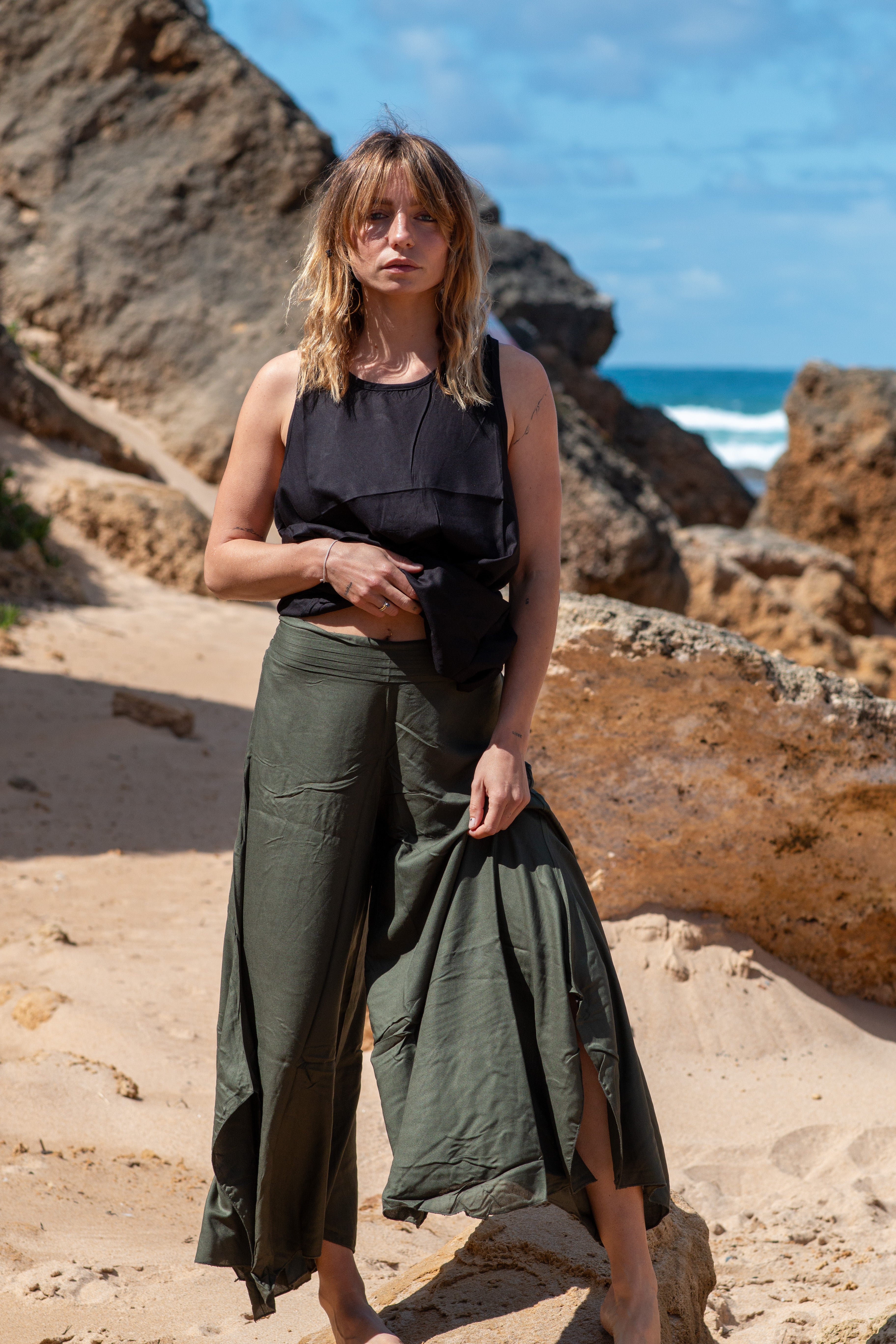 Confeccionadas em Rayon de alta qualidade, estas calças combinam leveza e respirabilidade.