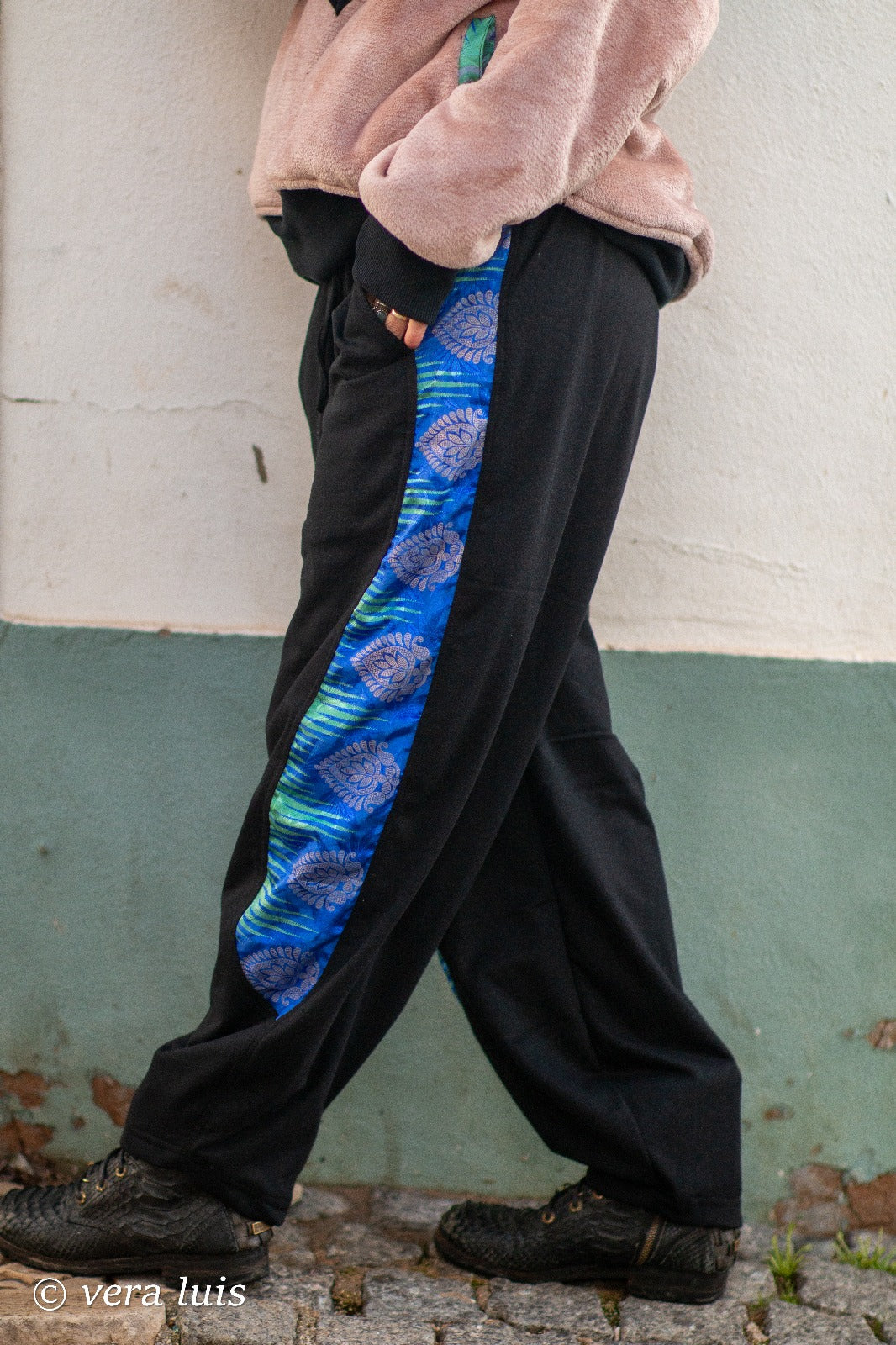 Calças de treino que celebram a liberdade e o estilo, com um detalhe lateral em Sari que adiciona carácter único.