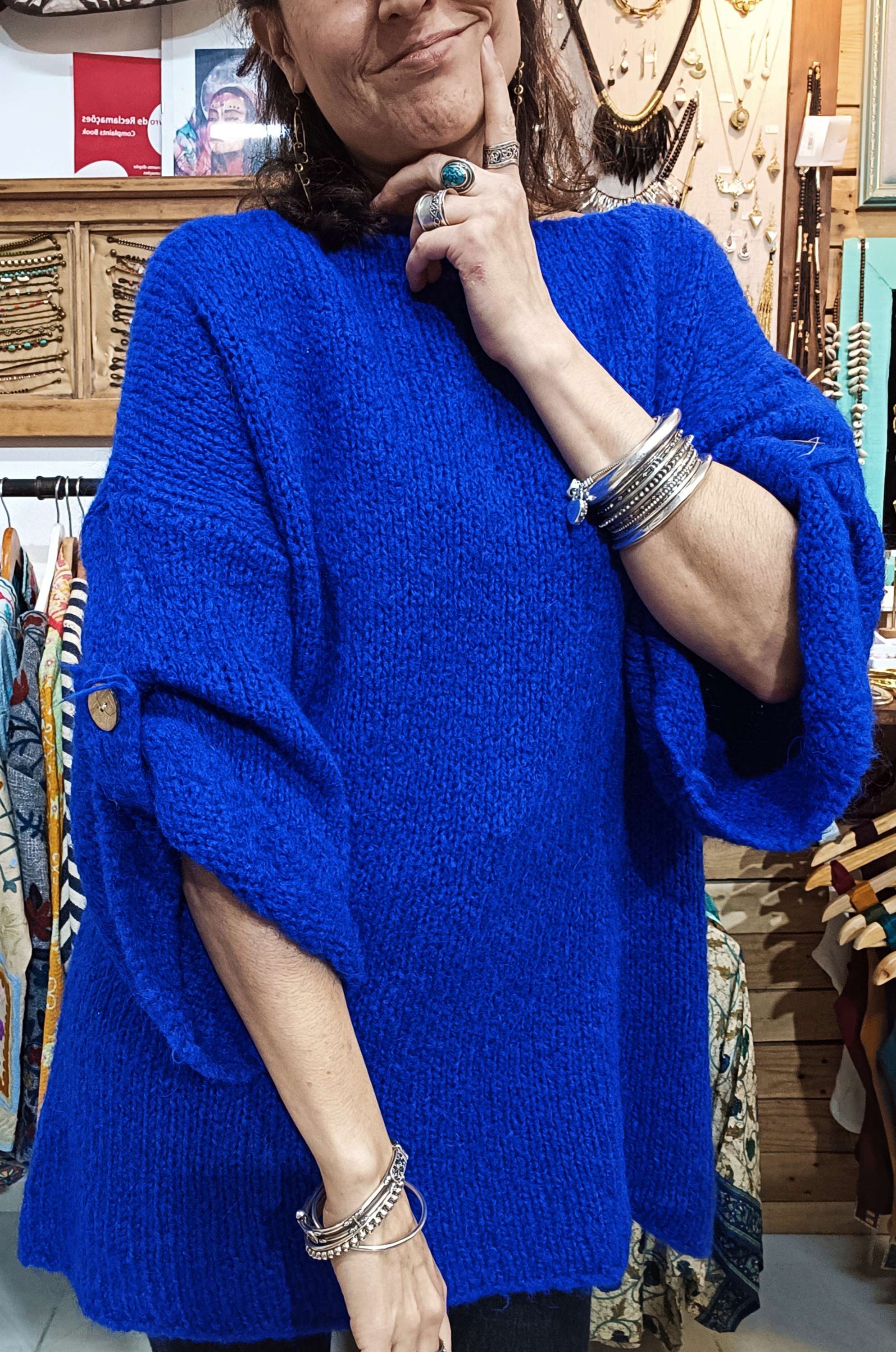 Camisola de malha azul