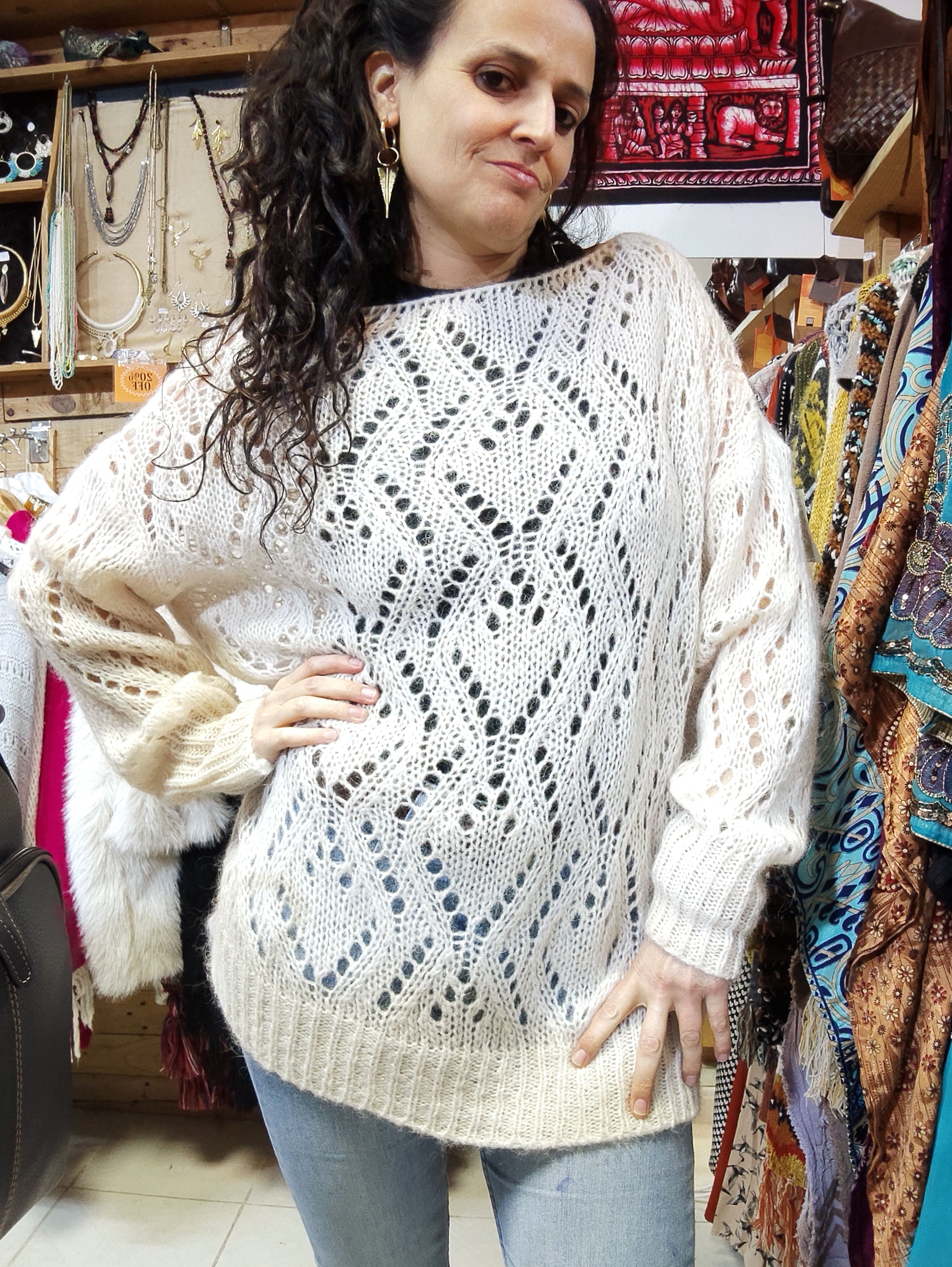 Camisola de malha em tamanho único, perfeita para um estilo descontraído e versátil.