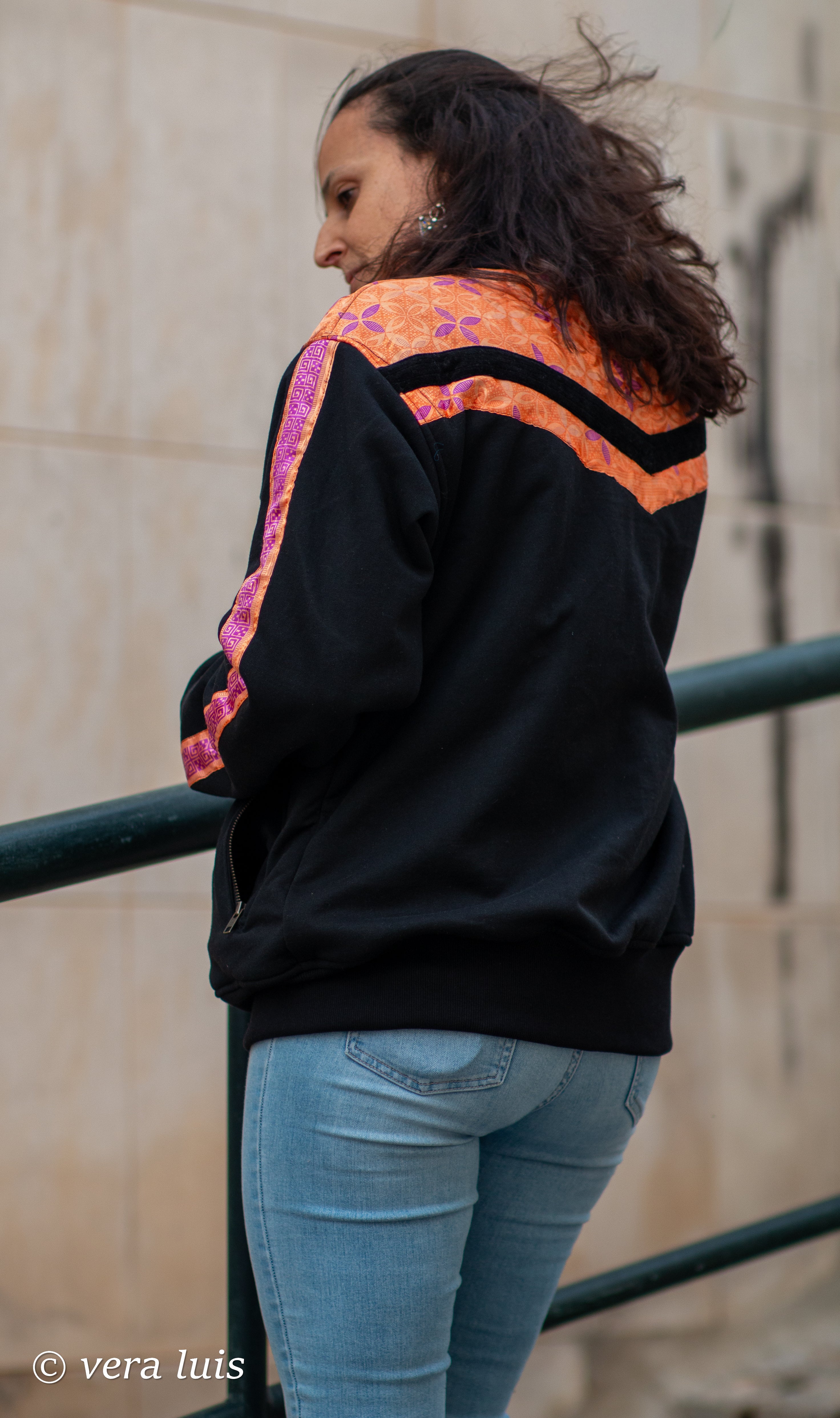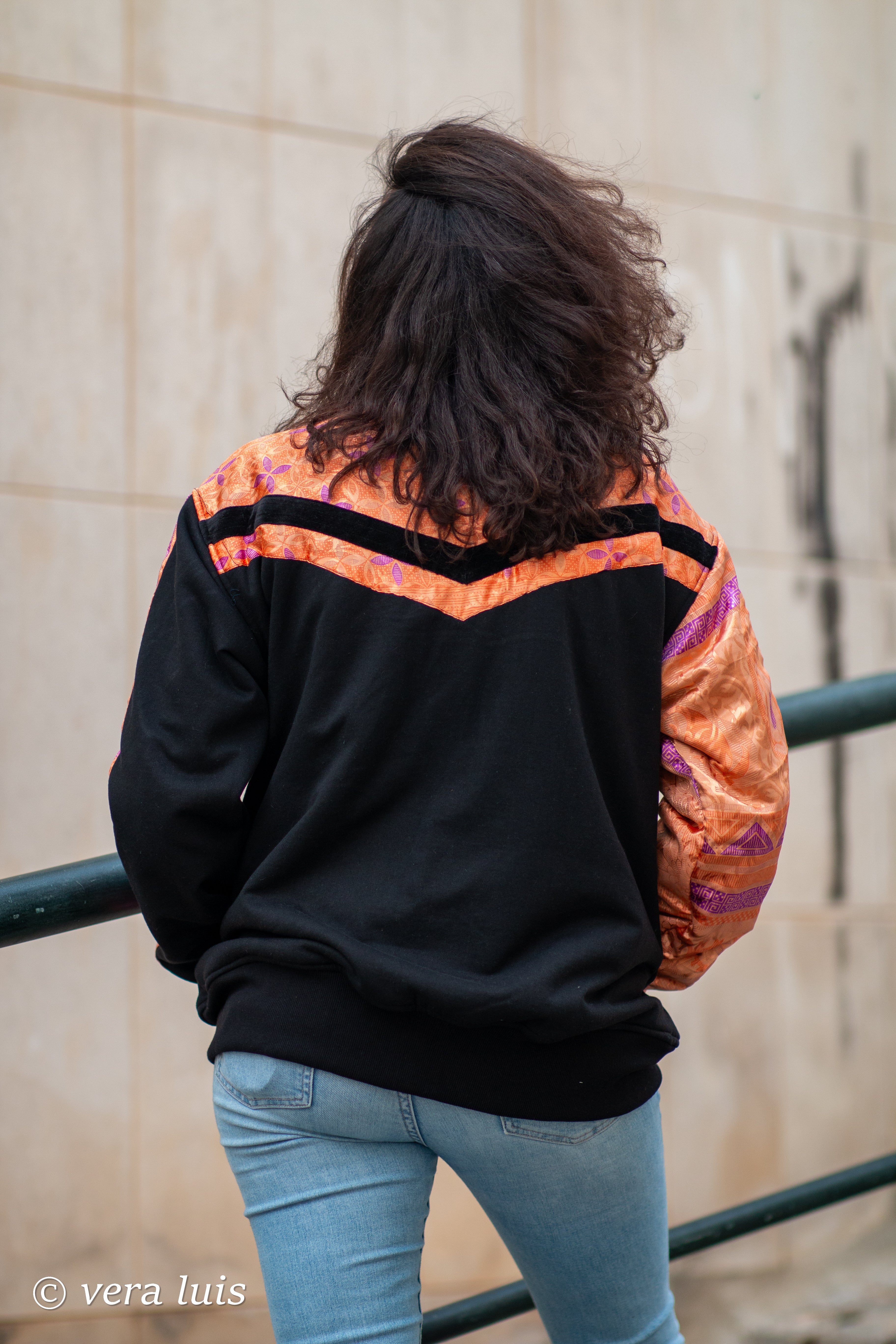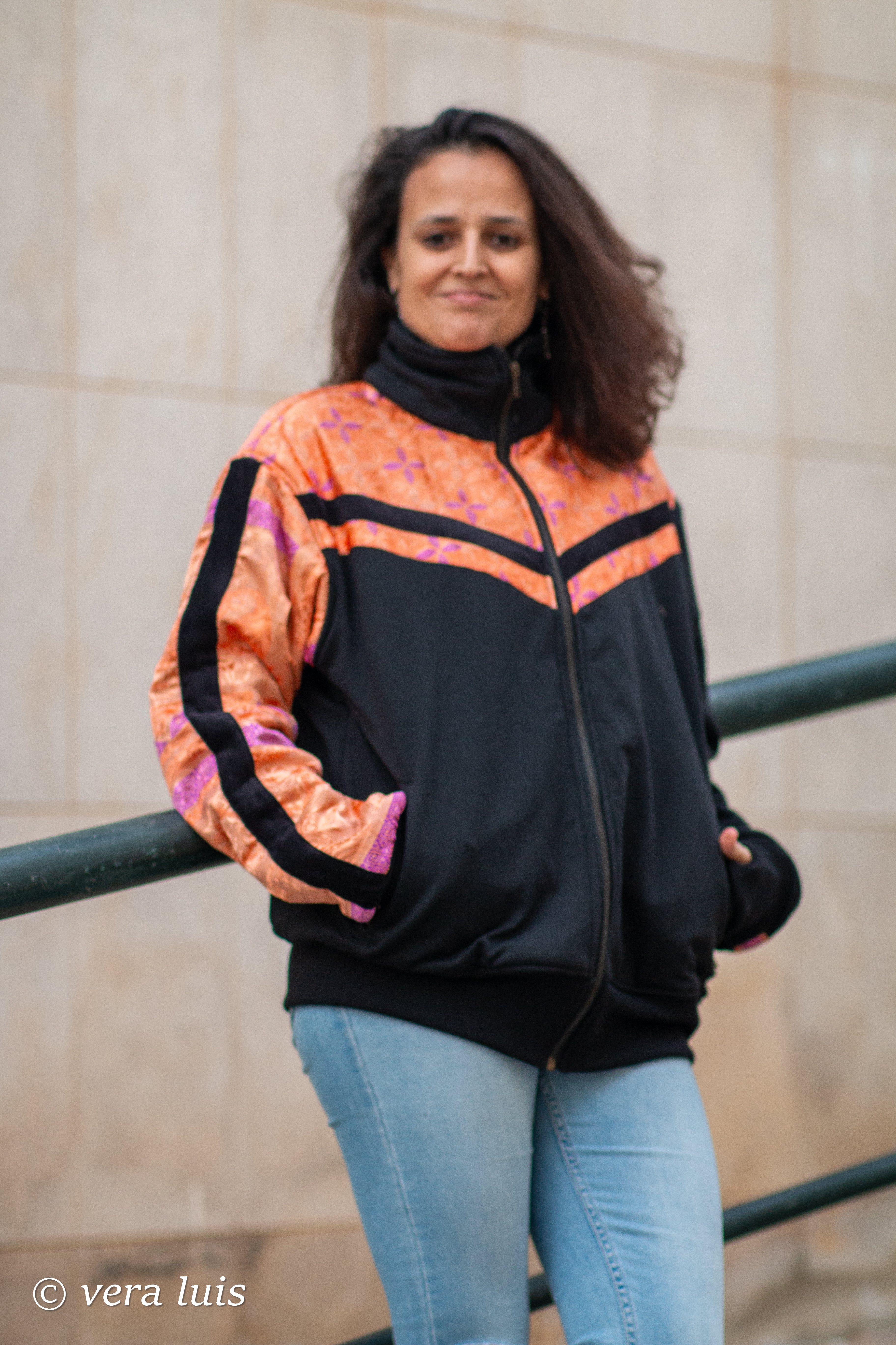 Este casaco é o resultado da fusão de diferentes tecidos que escolhi.