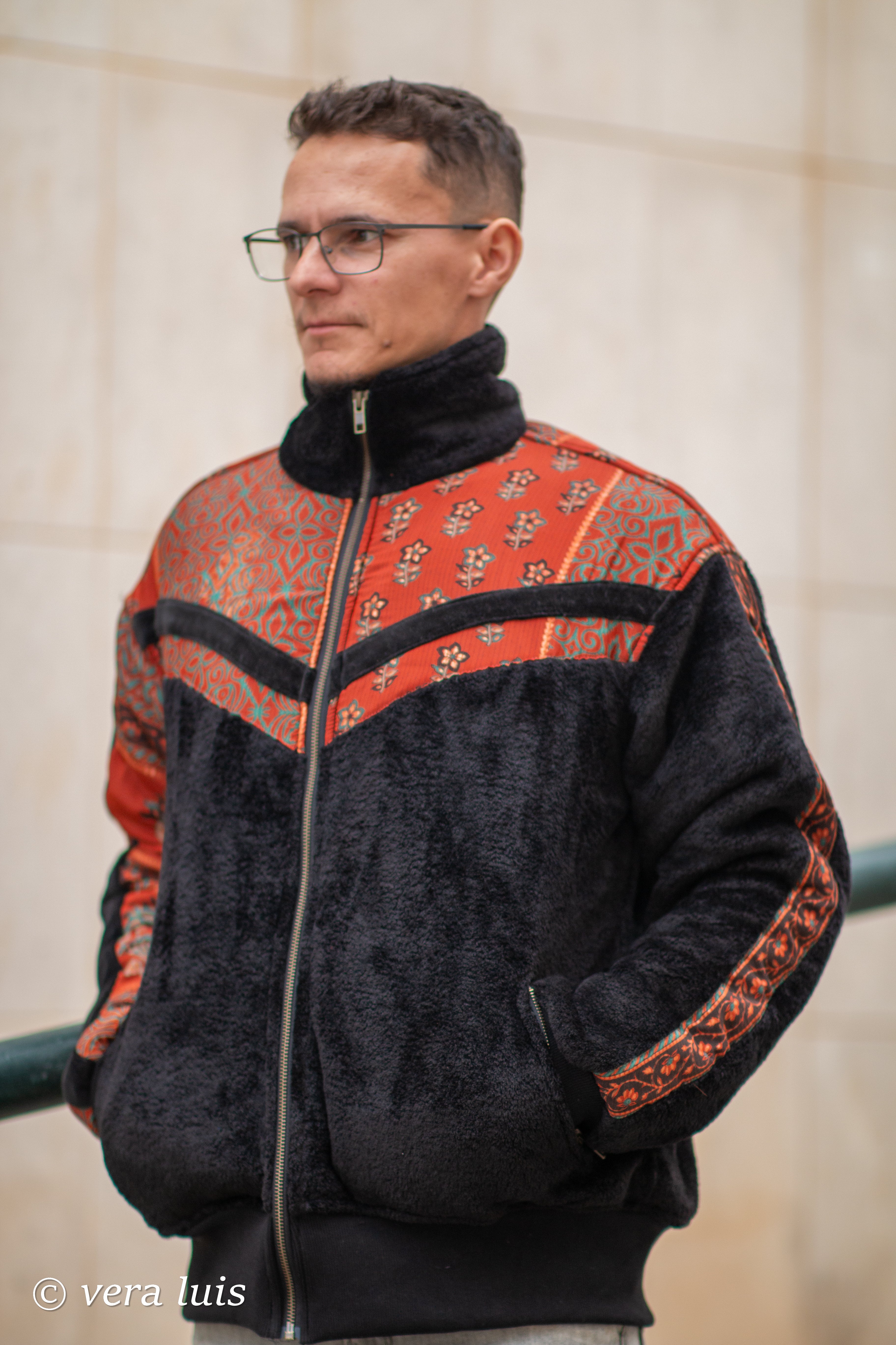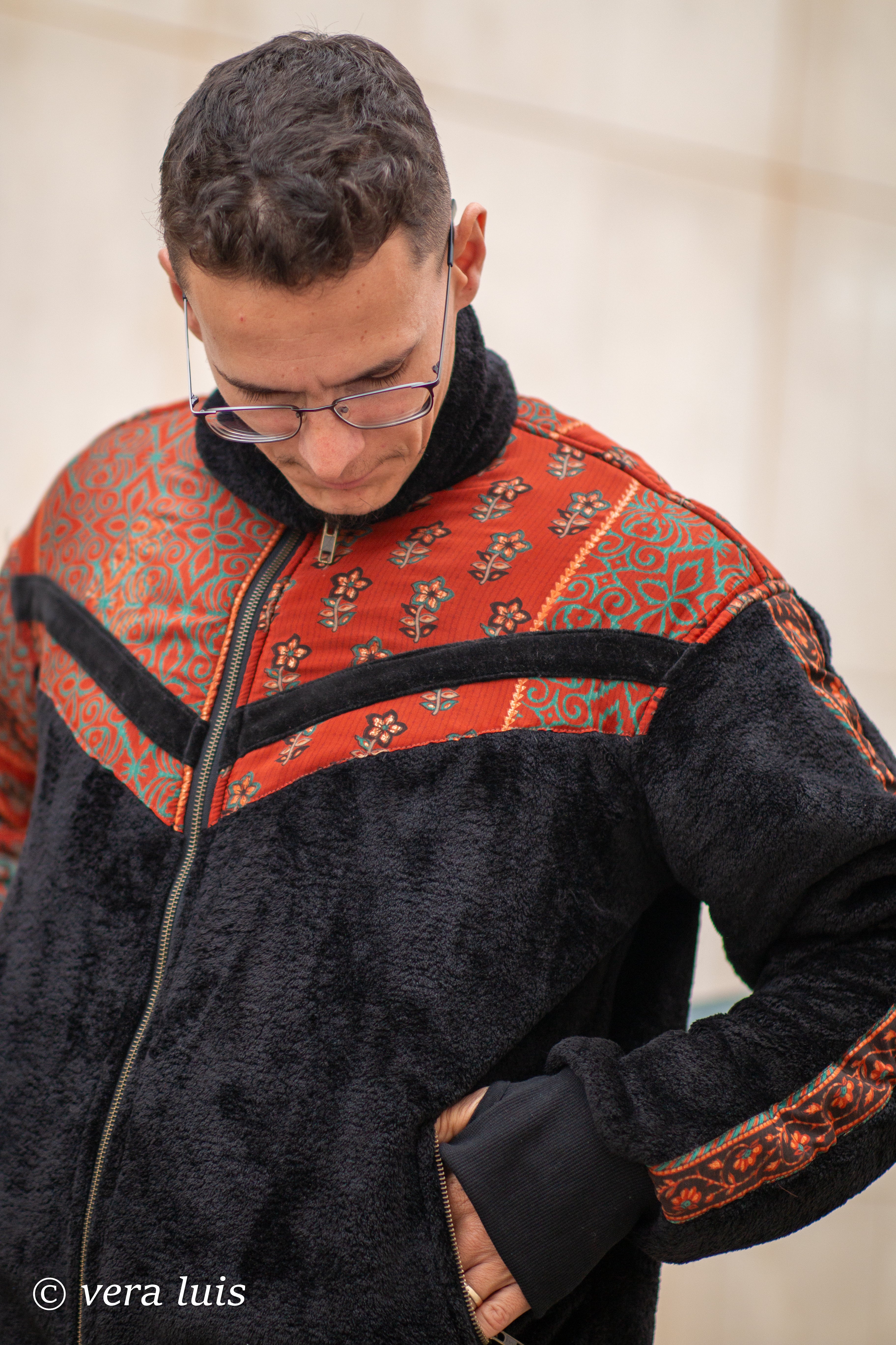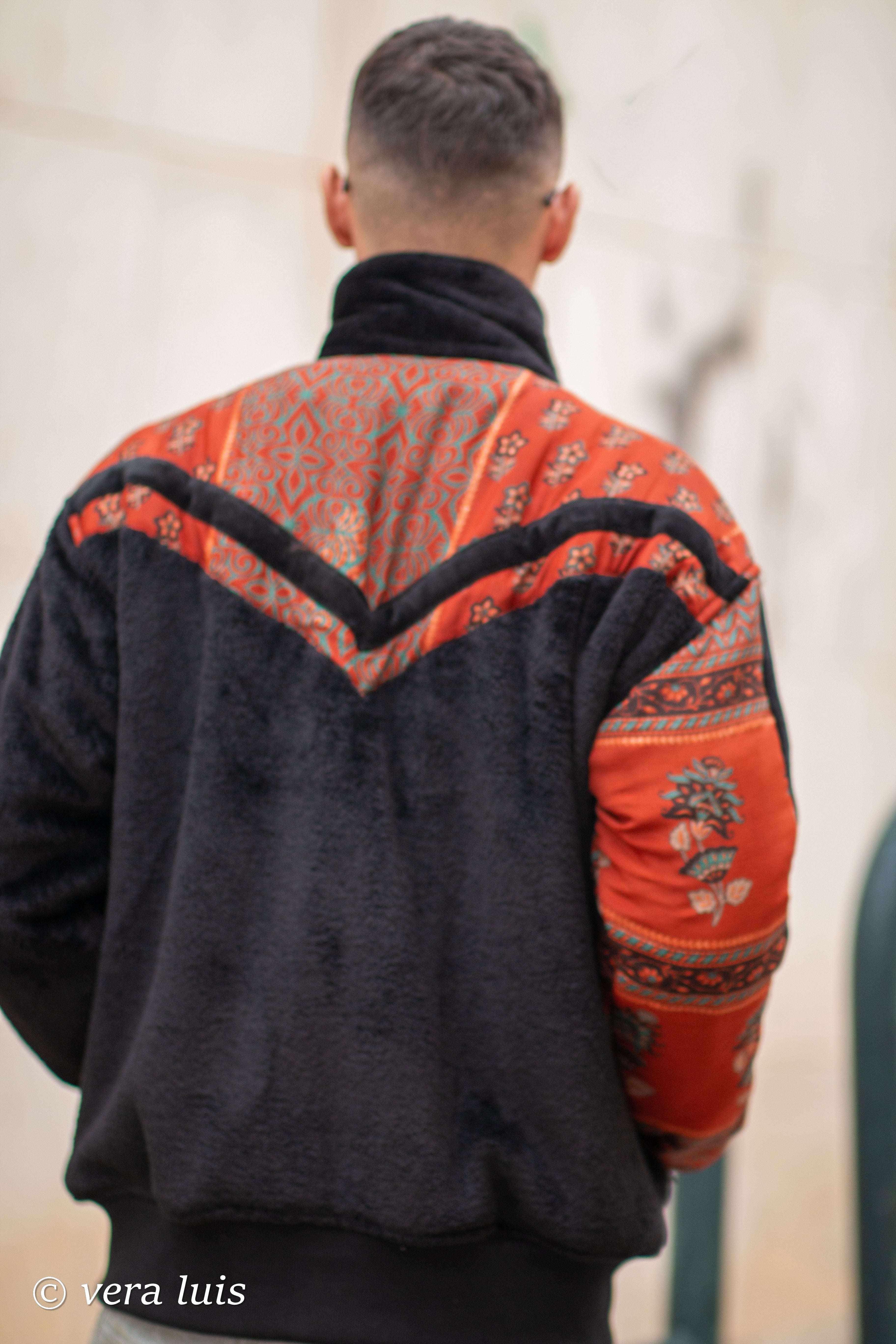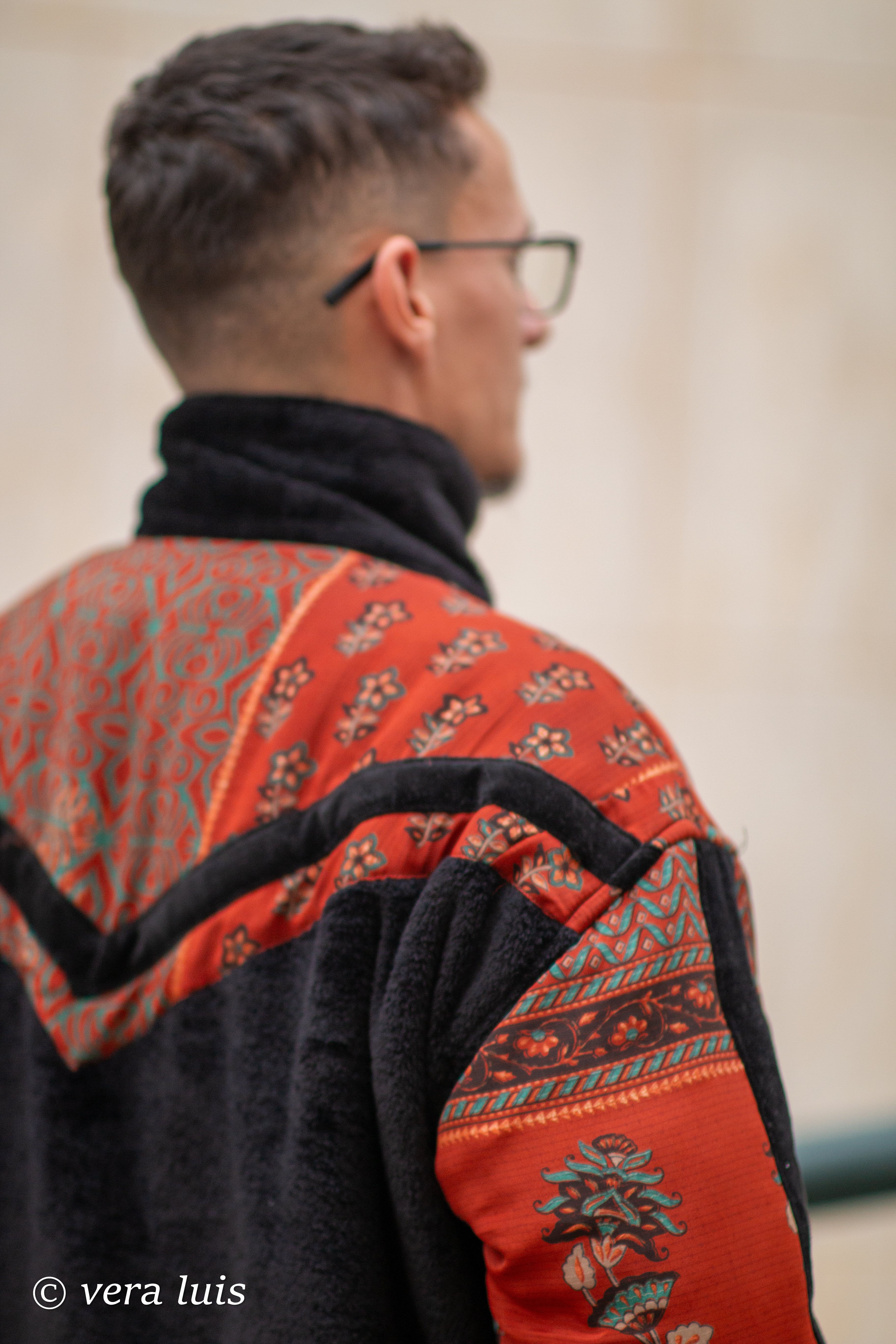 Este casaco é o resultado da fusão de diferentes tecidos que escolhi.