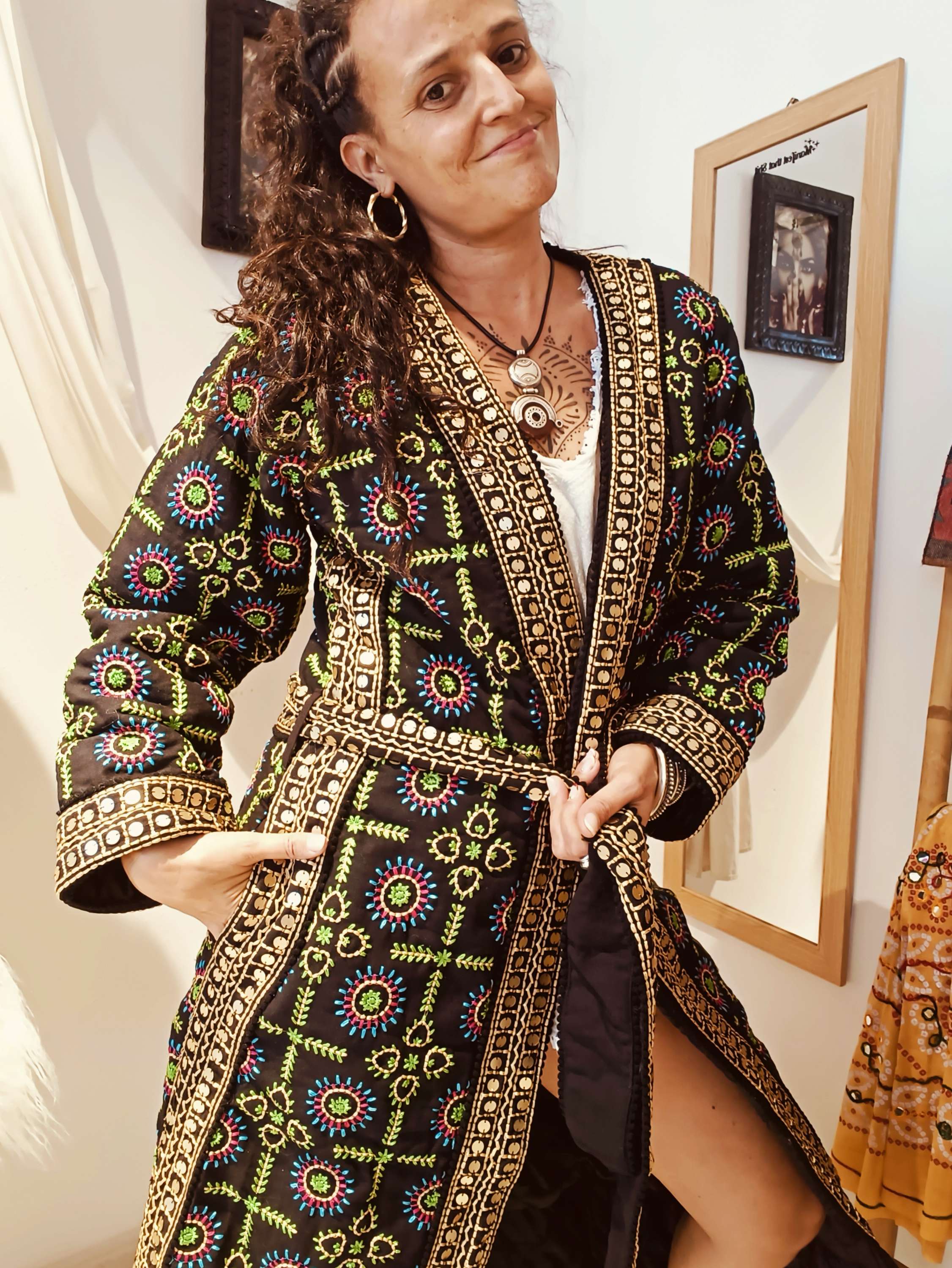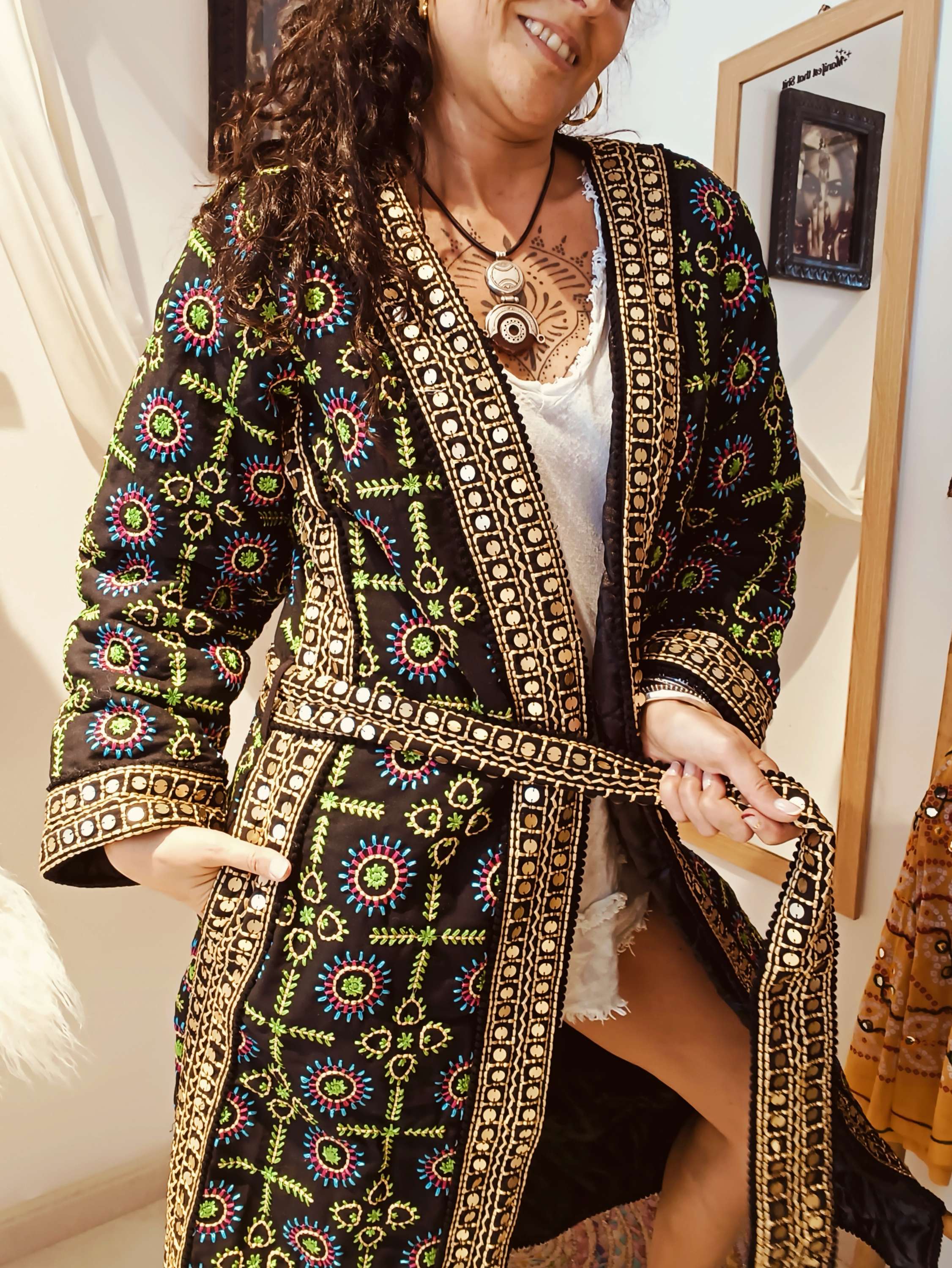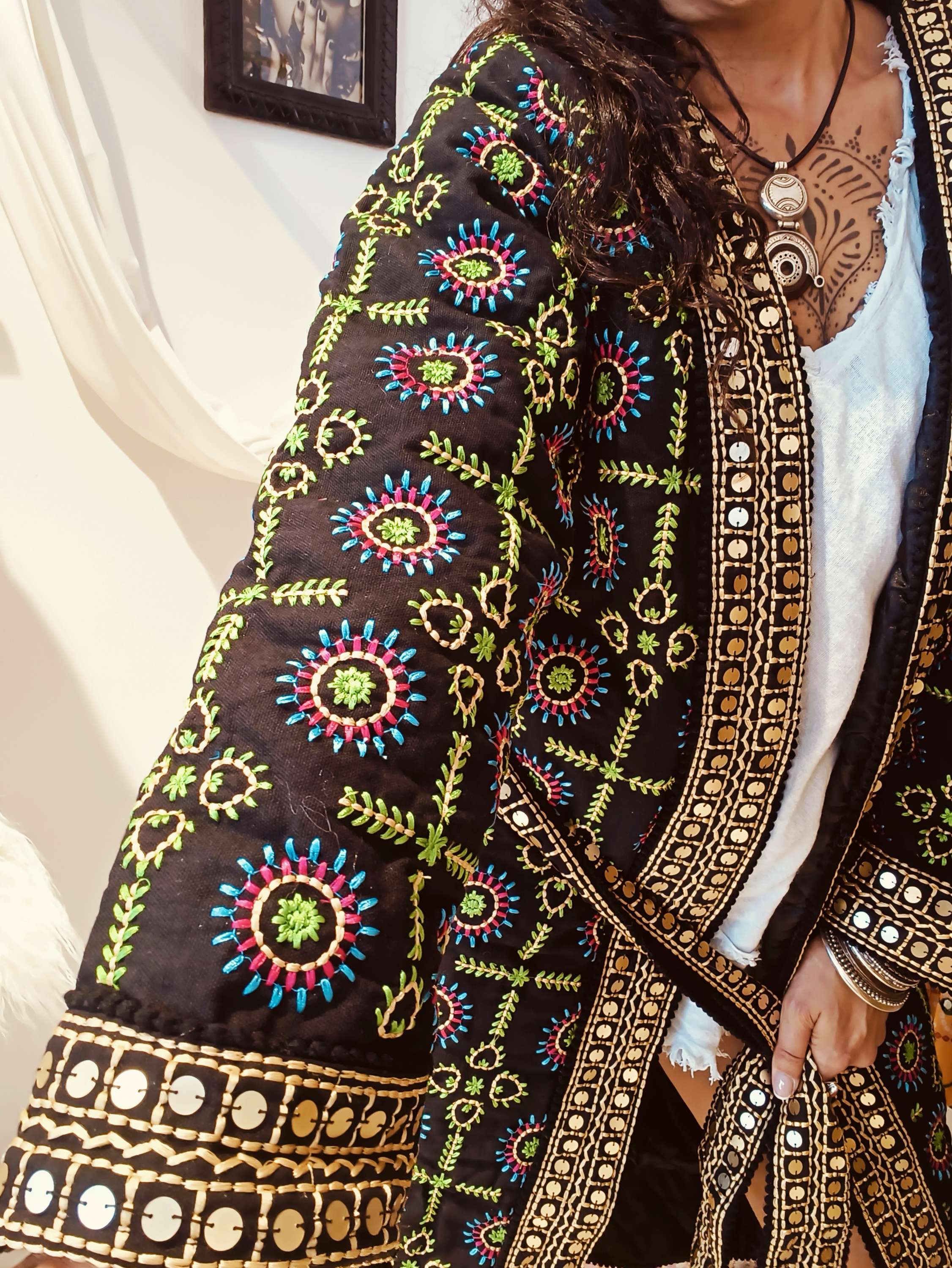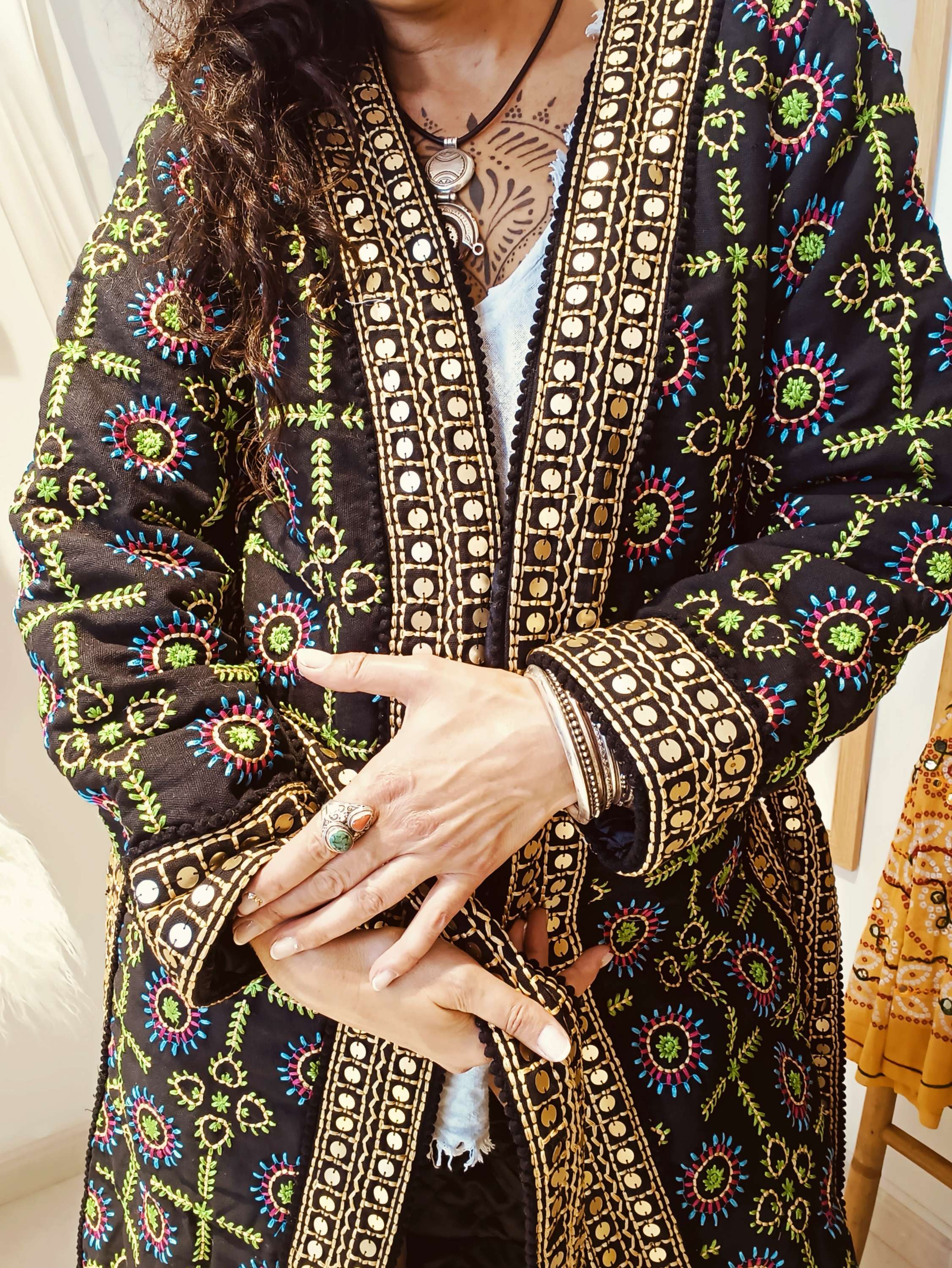 Detalhes bordados artesanais adicionam carácter e autenticidade.
