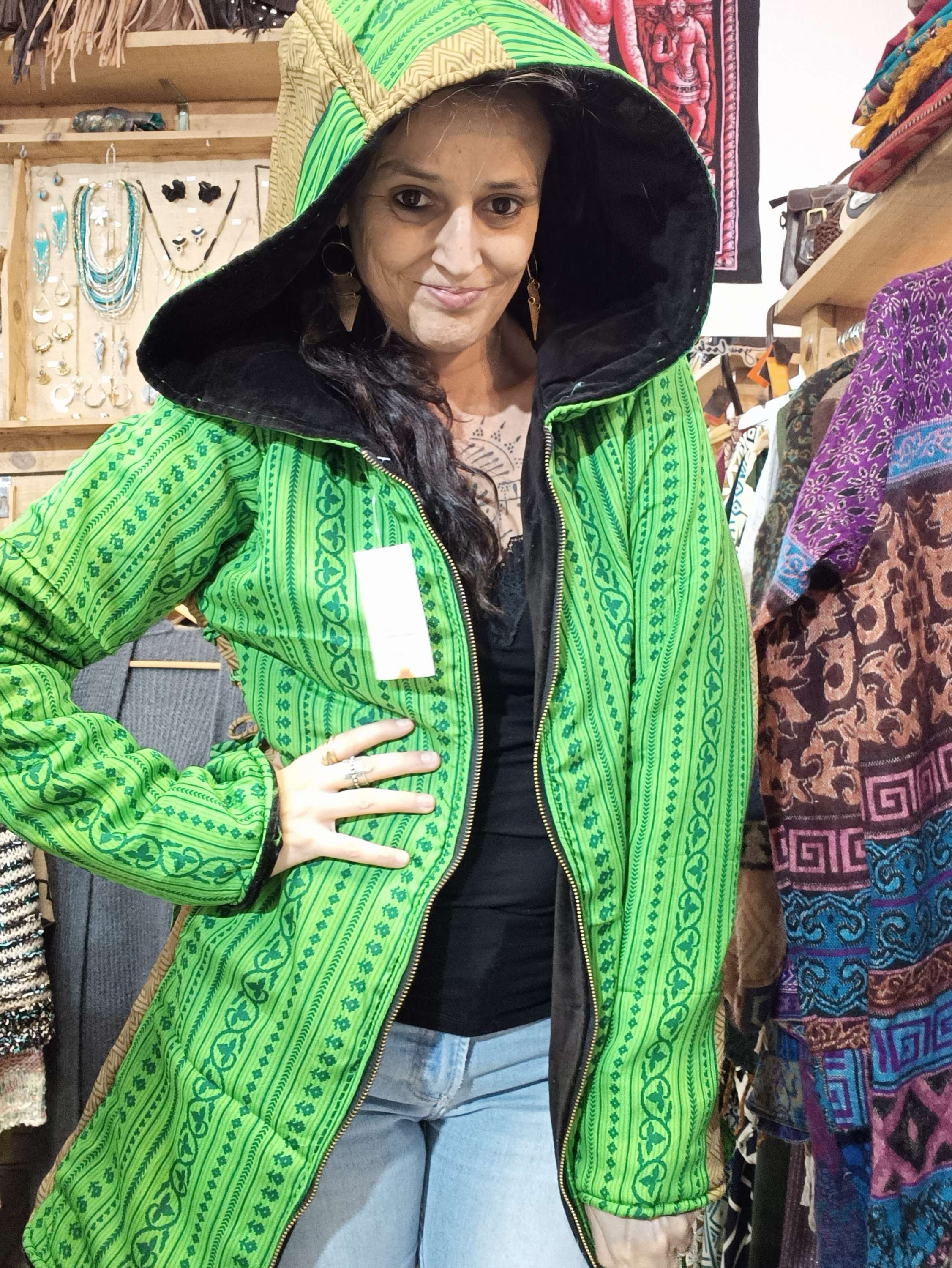 Os saris, tecidos de seda, são cuidadosamente escolhidos um a um. Os seus padrões são únicos e irrepetíveis, o que faz de cada peca única.