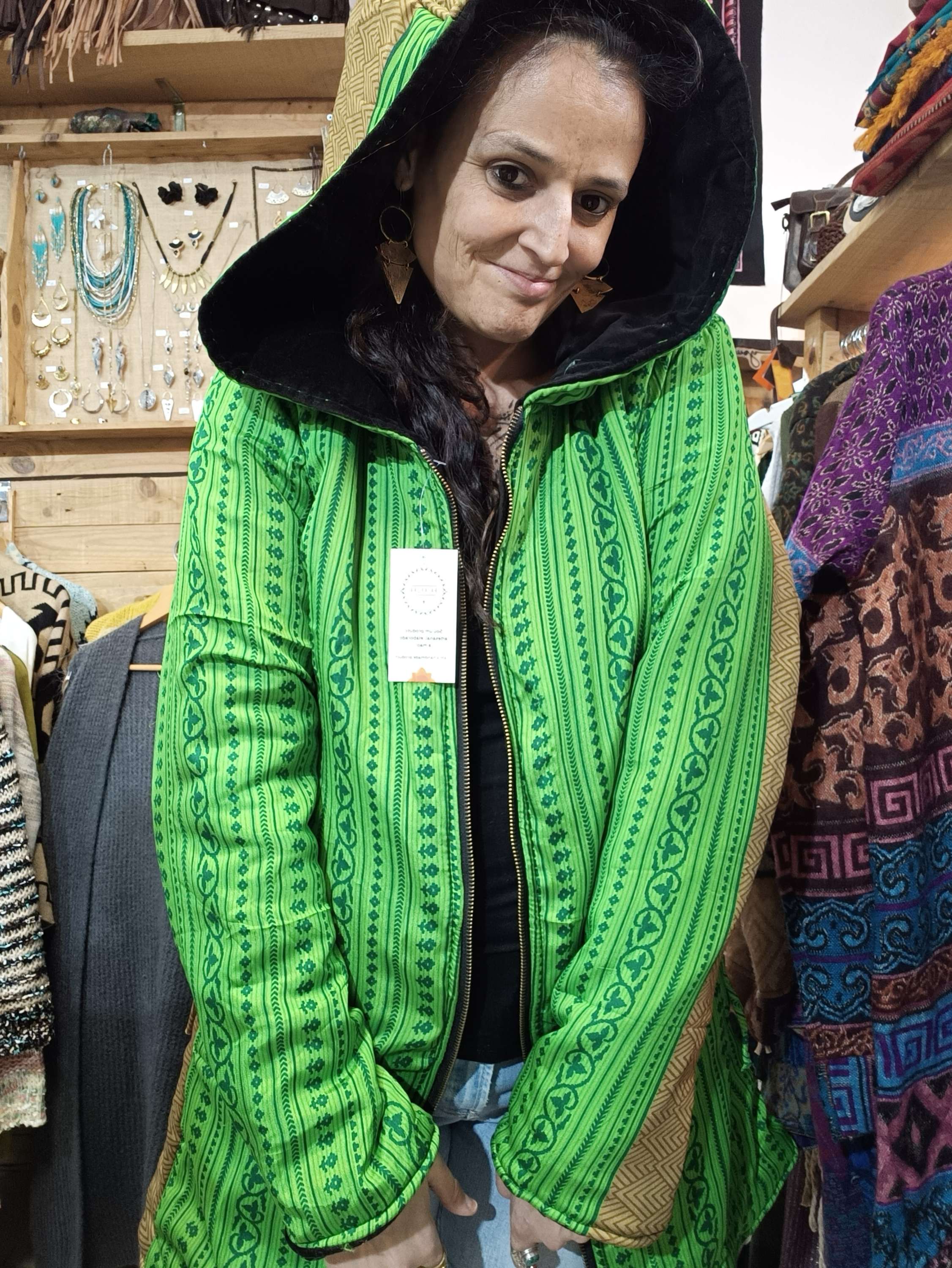 Seda reciclada de padrão único, o que faz destas peças exclusivas. Nenhuma se repete!