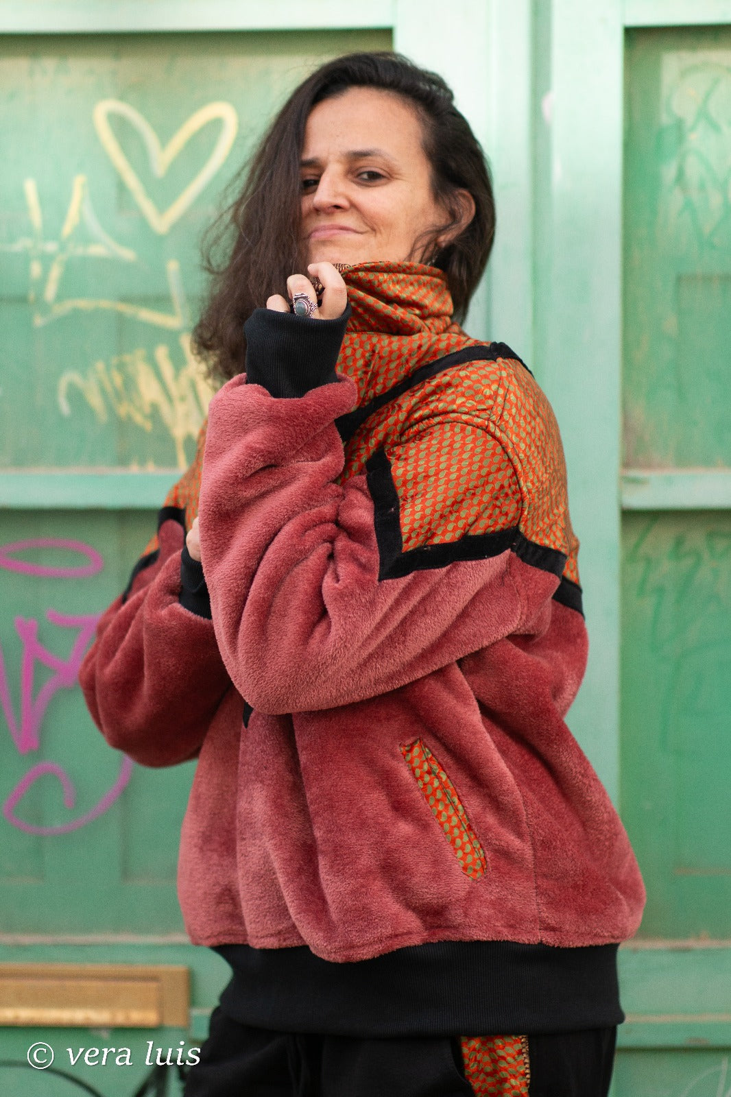 Cada pela integra saris reutilizados, escolhidos manualmente, tornando cada conjunto único em cores, padrões e texturas. A fusão entre algodão, fleece felpudo e polar macio garante aconchego térmico, respirabilidade e liberdade de movimento.