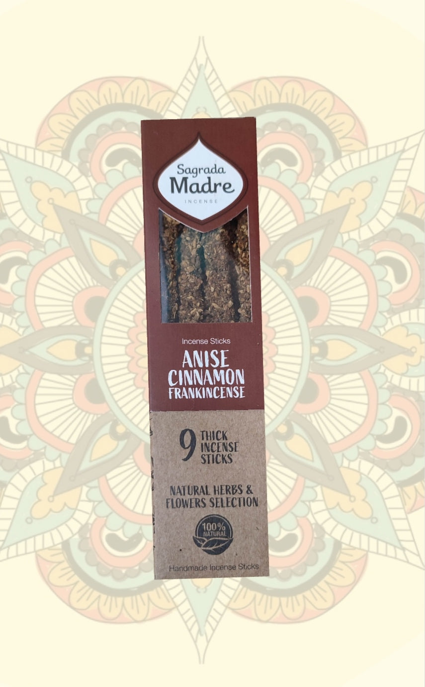 - Anis, Canela e Frankincense: Canela, Anis, óleo essencial de anis e canela, resina de frankincense e aglutinante natural;