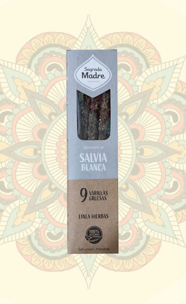 - Sálvia Branca: Folhas de sálvia branca, frankincense, copal, carvão vegetal e aglutinante natural à base de plantas;