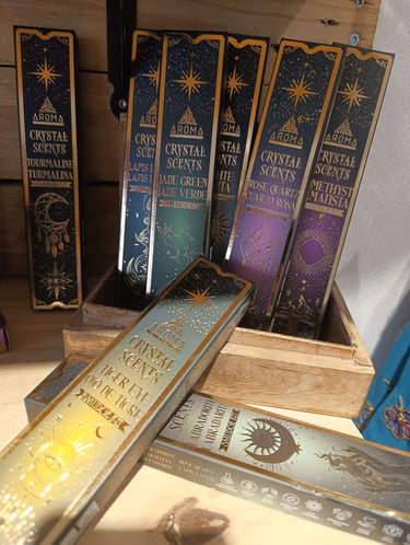 Seja para cultivar a abundância com a pirita, encontrar a paz interior com o jade verde ou explorar os mistérios do seu ser com a labradorita, estes incensos oferecem uma experiência sensorial única.