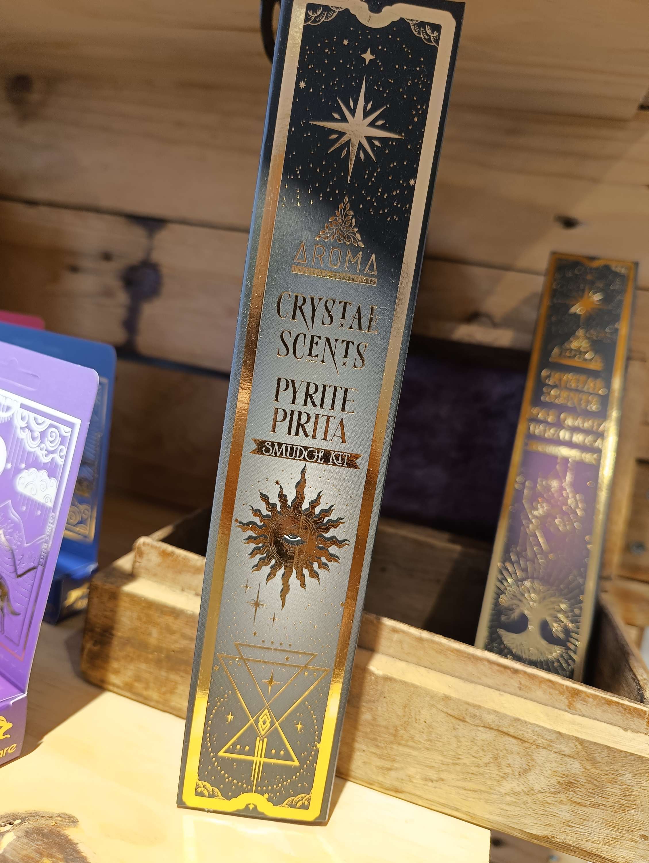 O incenso Crystal Scents Pirite contêm propriedades purificadores que alcançam uma energia excepcional que ajuda a eliminar bloqueios energéticos, a fortalecer a autoestima e a atrair novas oportunidades para a vida. Com um fragrância natural que transforma o ambiente com um aroma místico e relaxante, perfeito para meditação ou para criar um espaço sereno em casa.