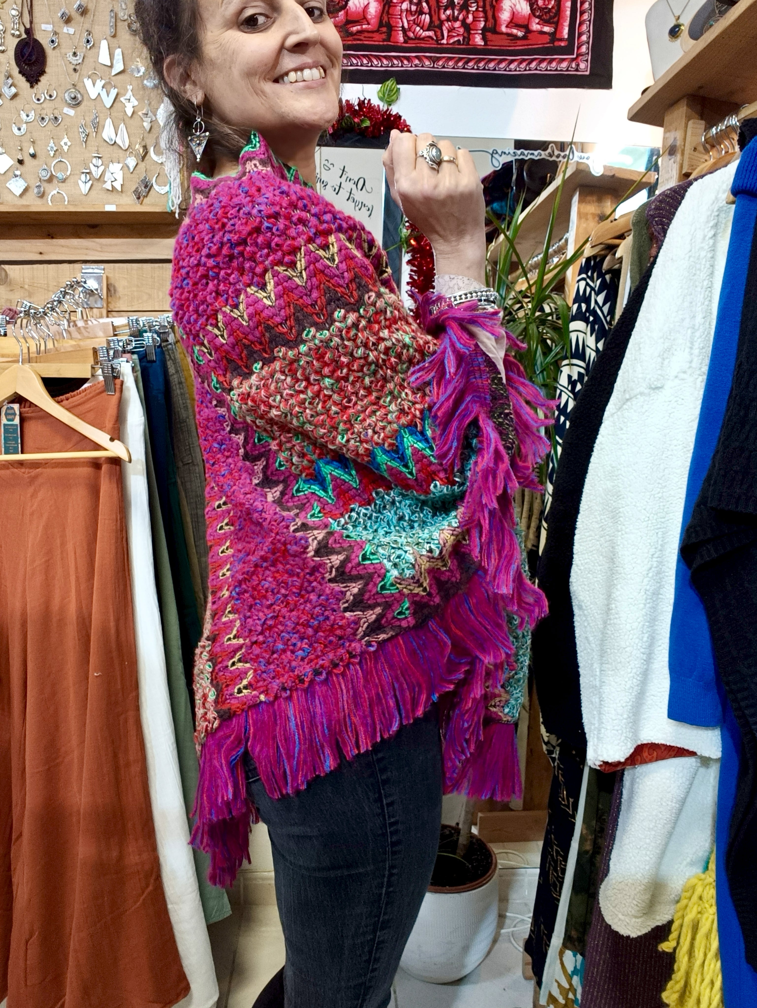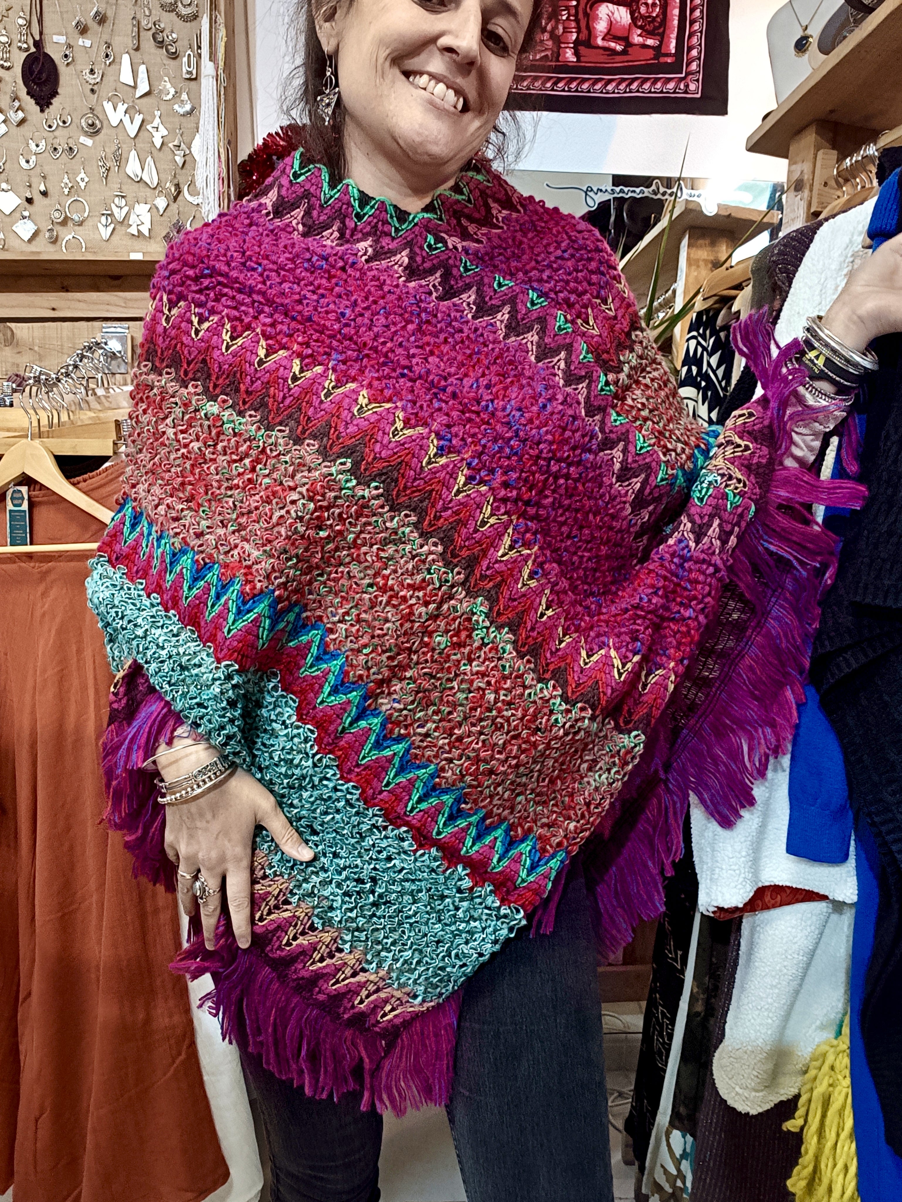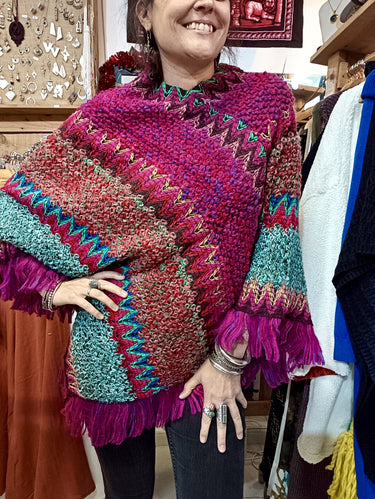 Poncho Asteca rosa