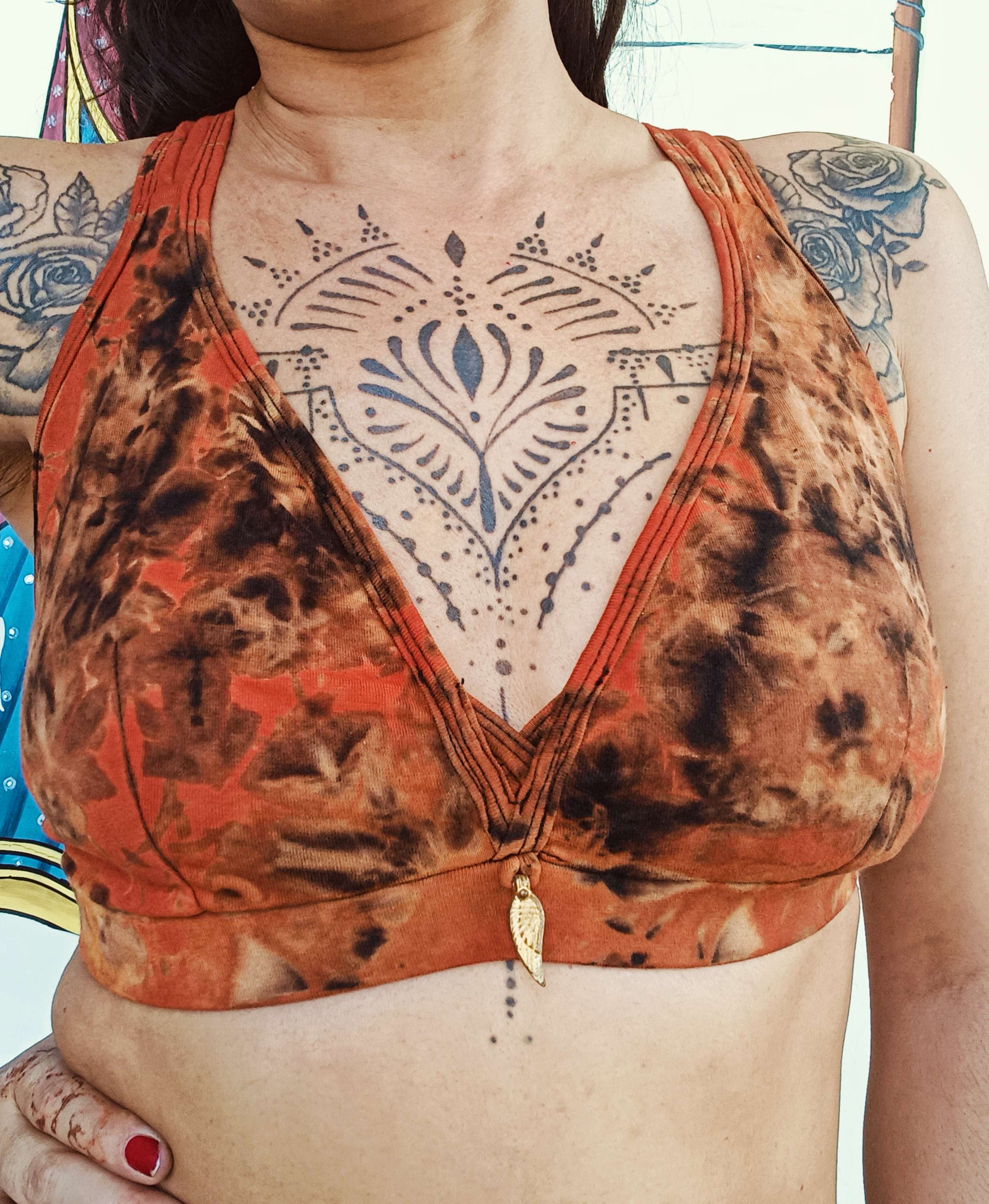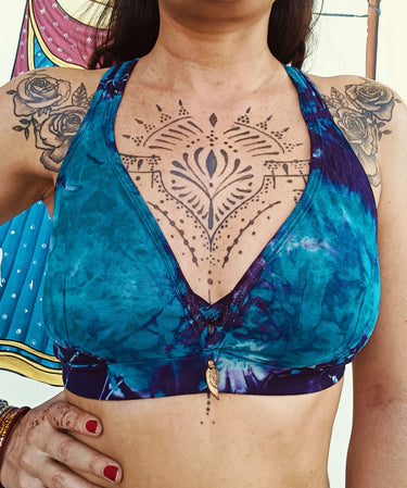 O top Boondi em tie dye é criado com pigmentos naturais que conferem autenticidade e carácter a cada peça.