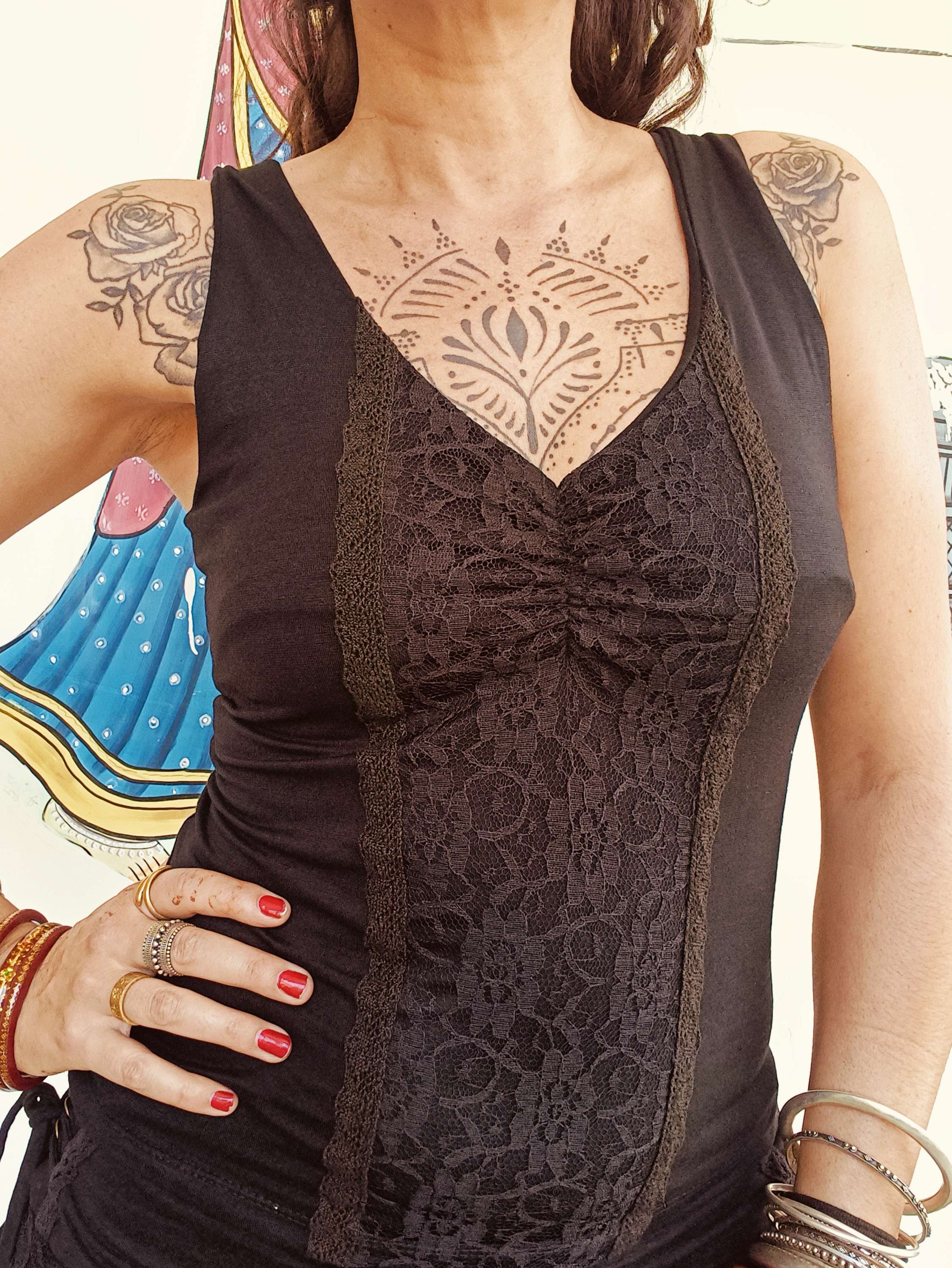 O Top Gupta é uma criação versátil que une a fluidez da viscose com toques de renda delicada.