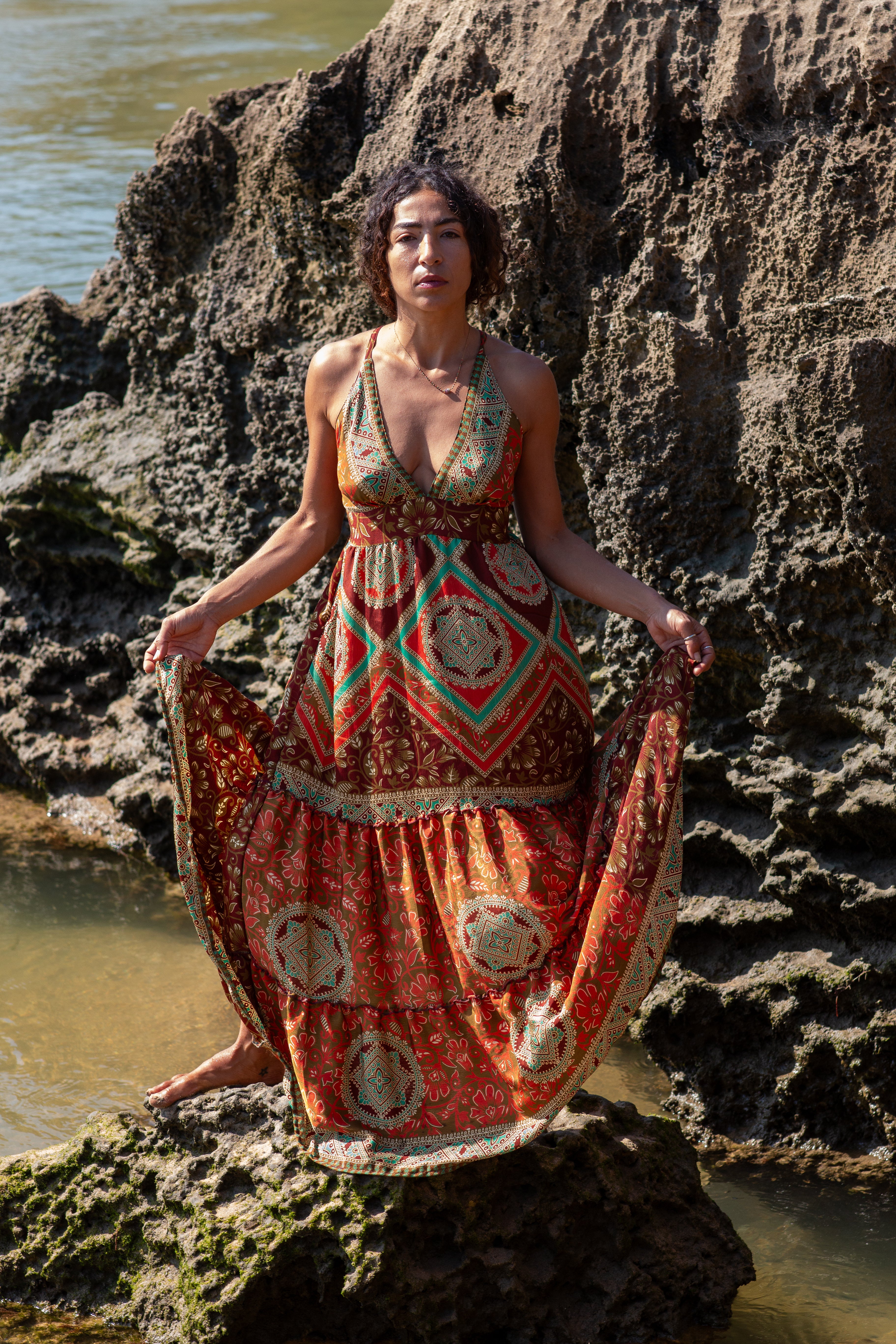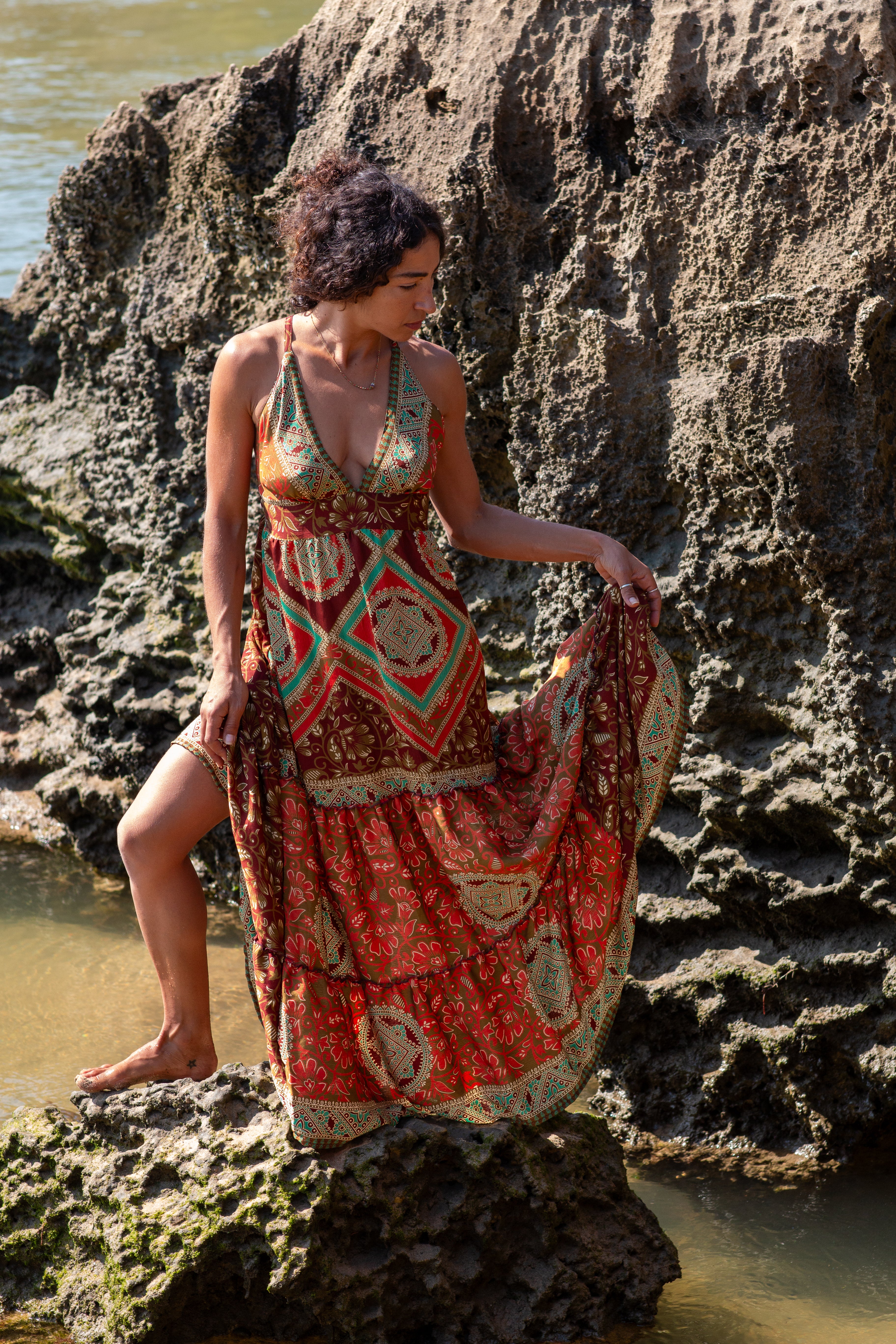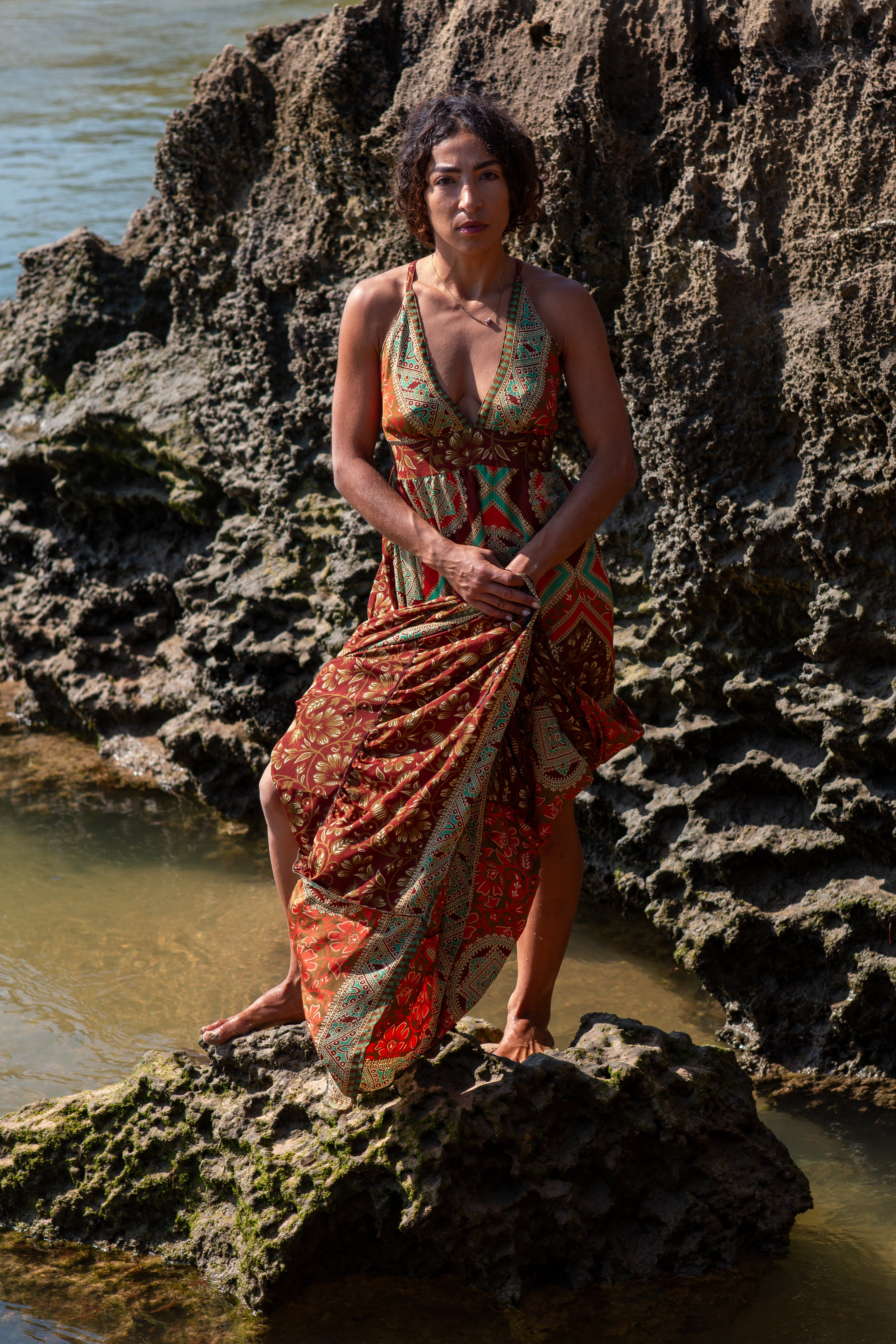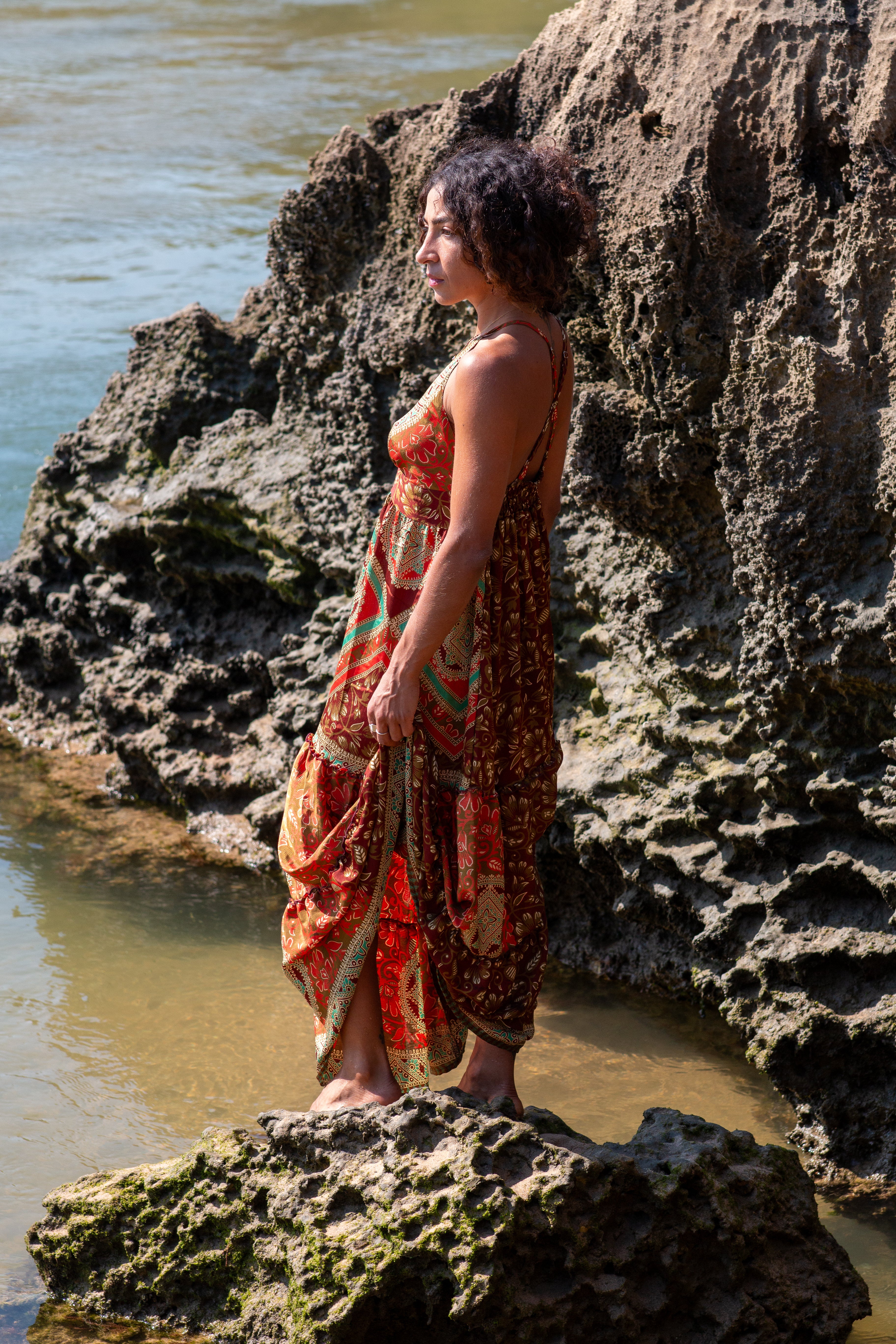 Cada Vestido Margarida é uma criação única, nascida do upcycling de saris autênticos.