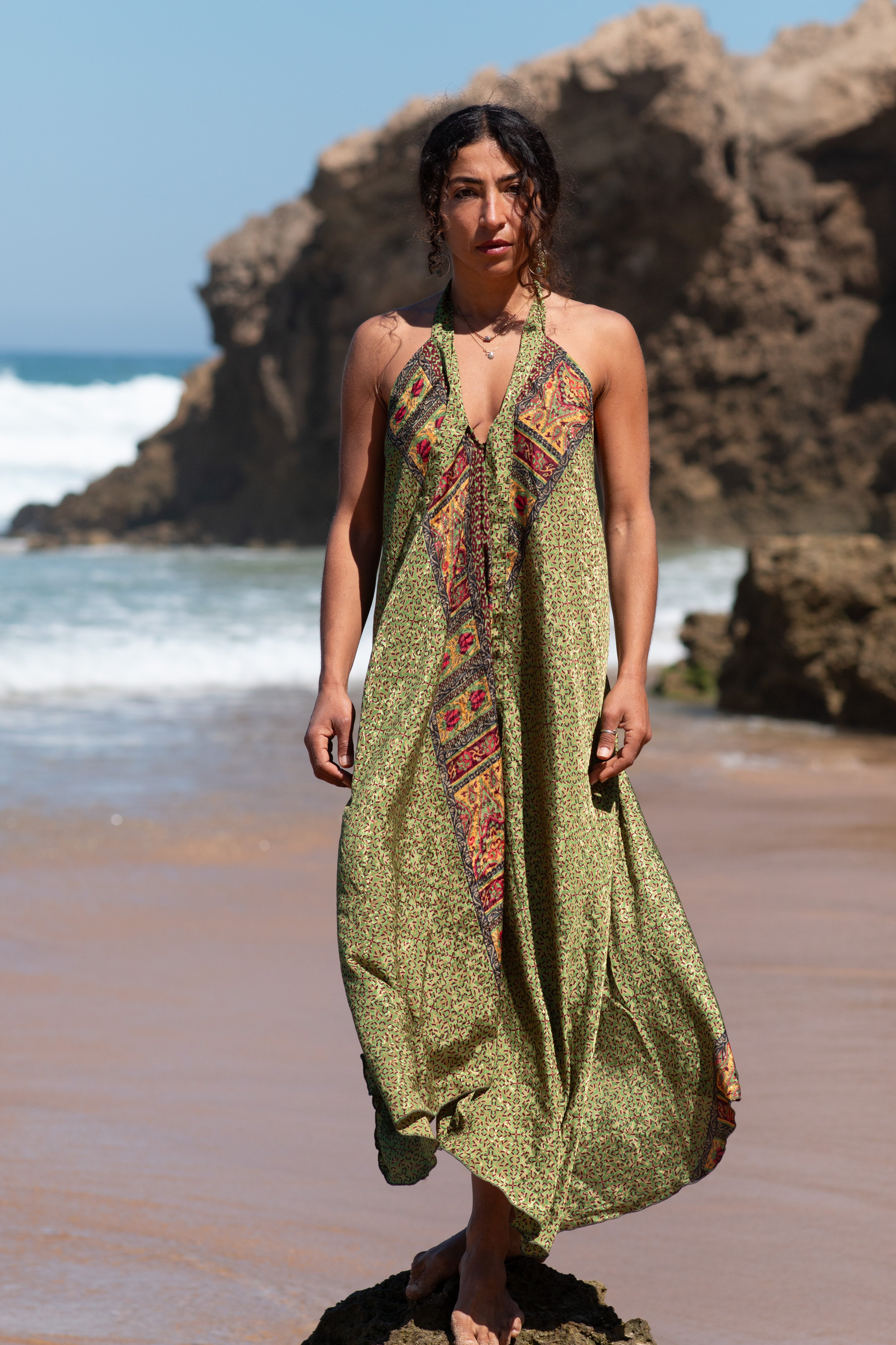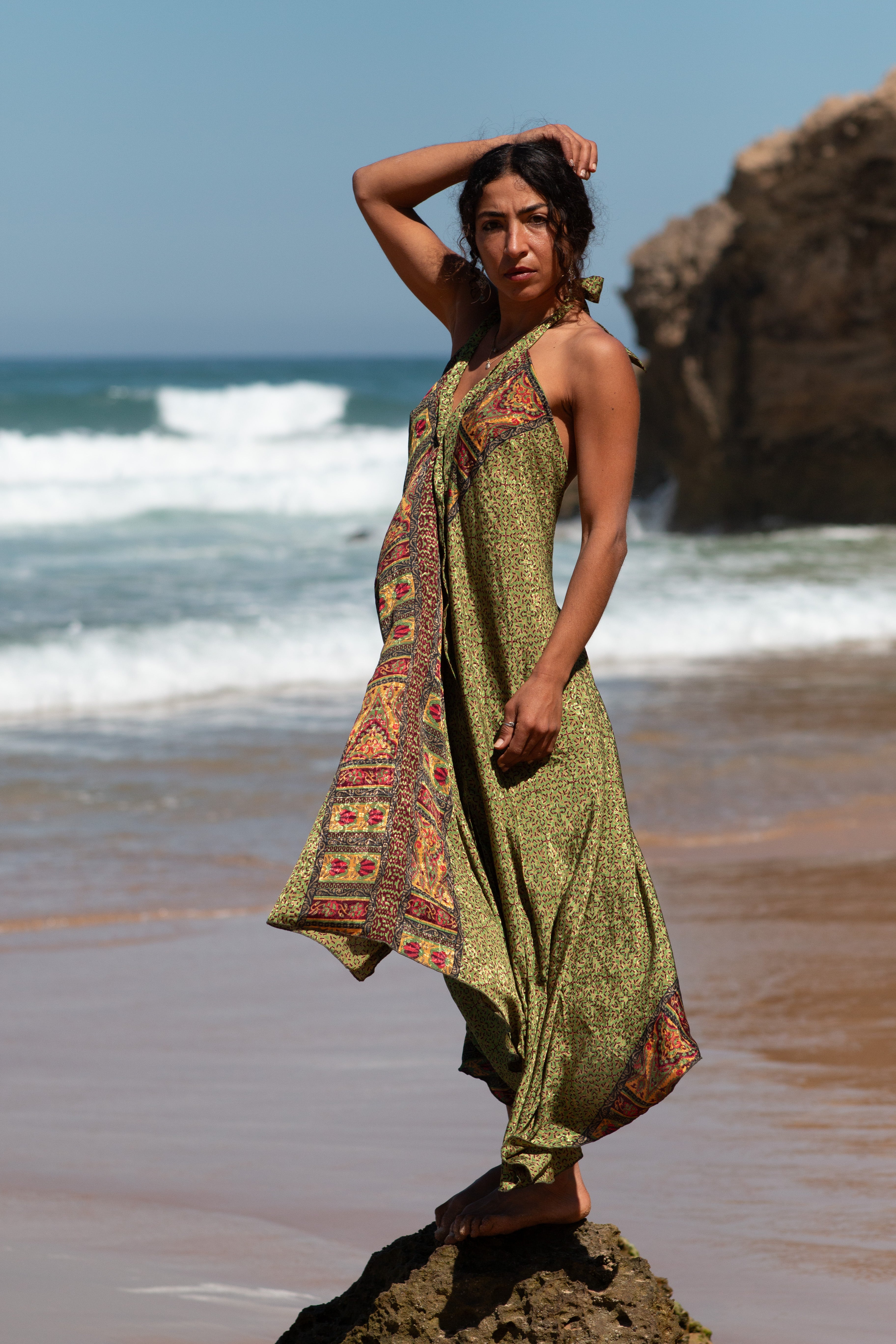 Os saris, tecidos de seda, são cuidadosamente escolhidos um a um. Os seus padrões são únicos e irrepetíveis, o que faz de cada peca única.