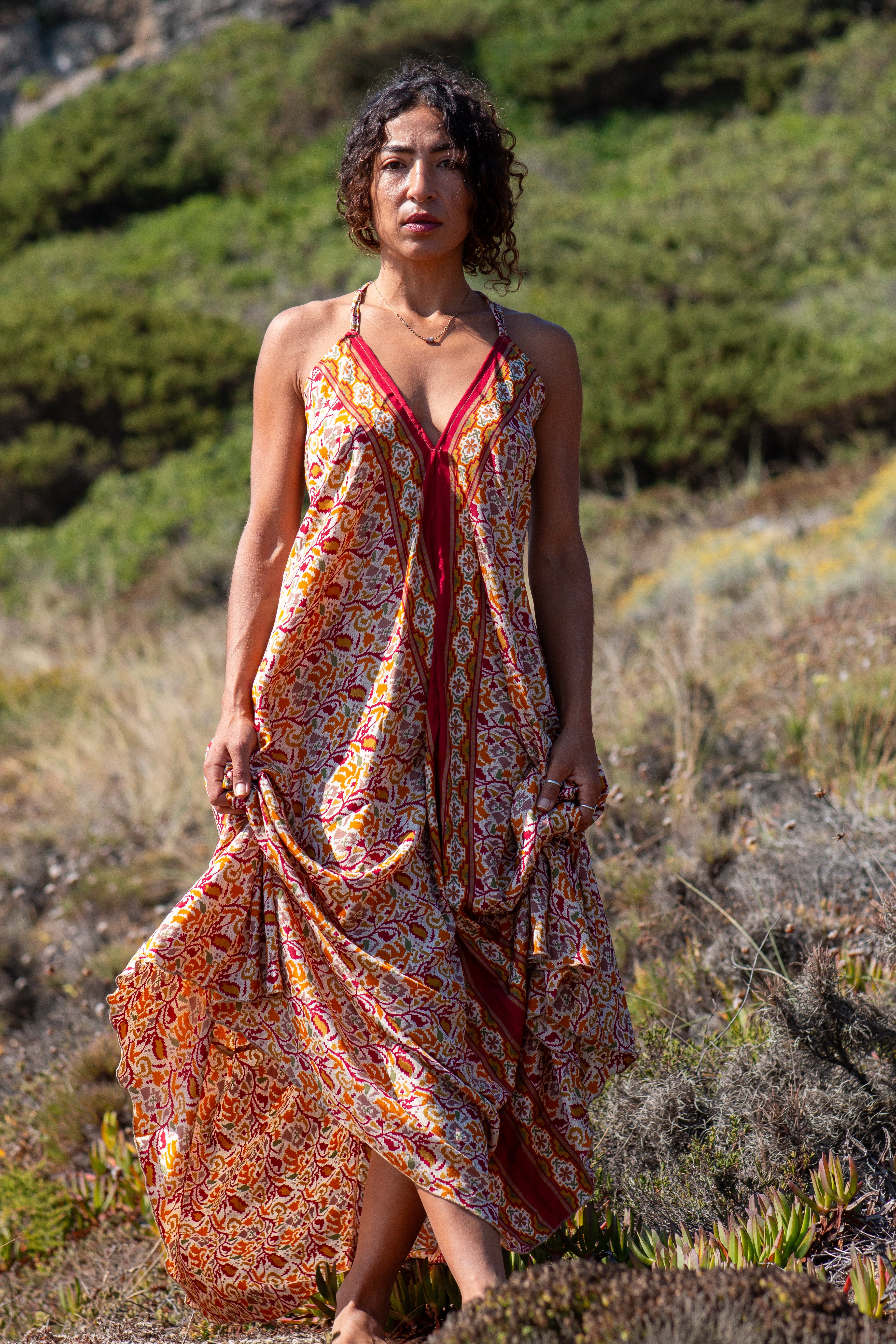Cada Vestido Karma é uma criação singular, nascida do upcycling de saris autênticos.