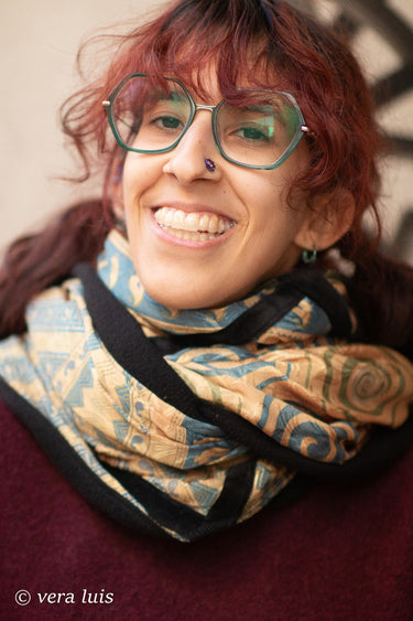 This scarf was born from the careful fusion of different fabrics, each chosen with intention and care.