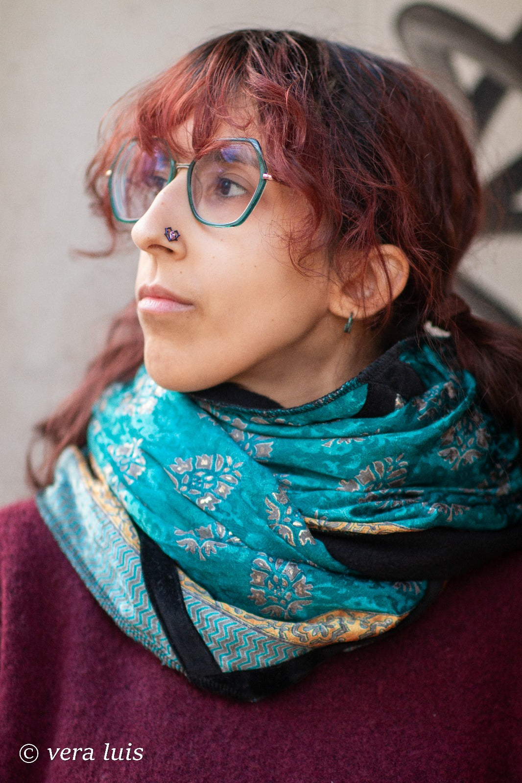 This scarf was born from the careful fusion of different fabrics, each chosen with intention and care.