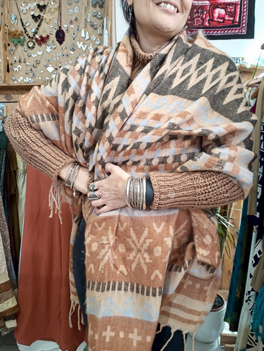 Manta Étnica marrón y marrón claro