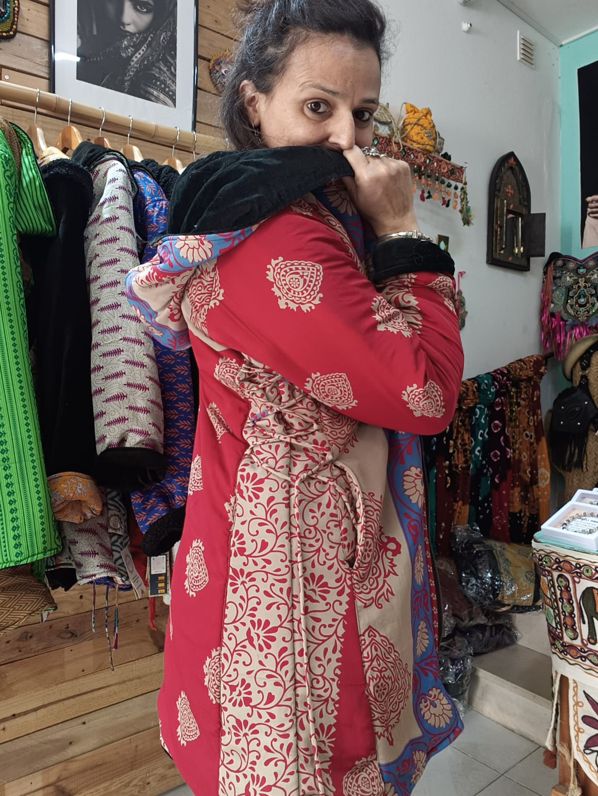 🔱 Nuestras colecciones integran materiales reciclados, transformando las prendas antiguas usadas por mujeres indias en nuevas piezas de vestir.