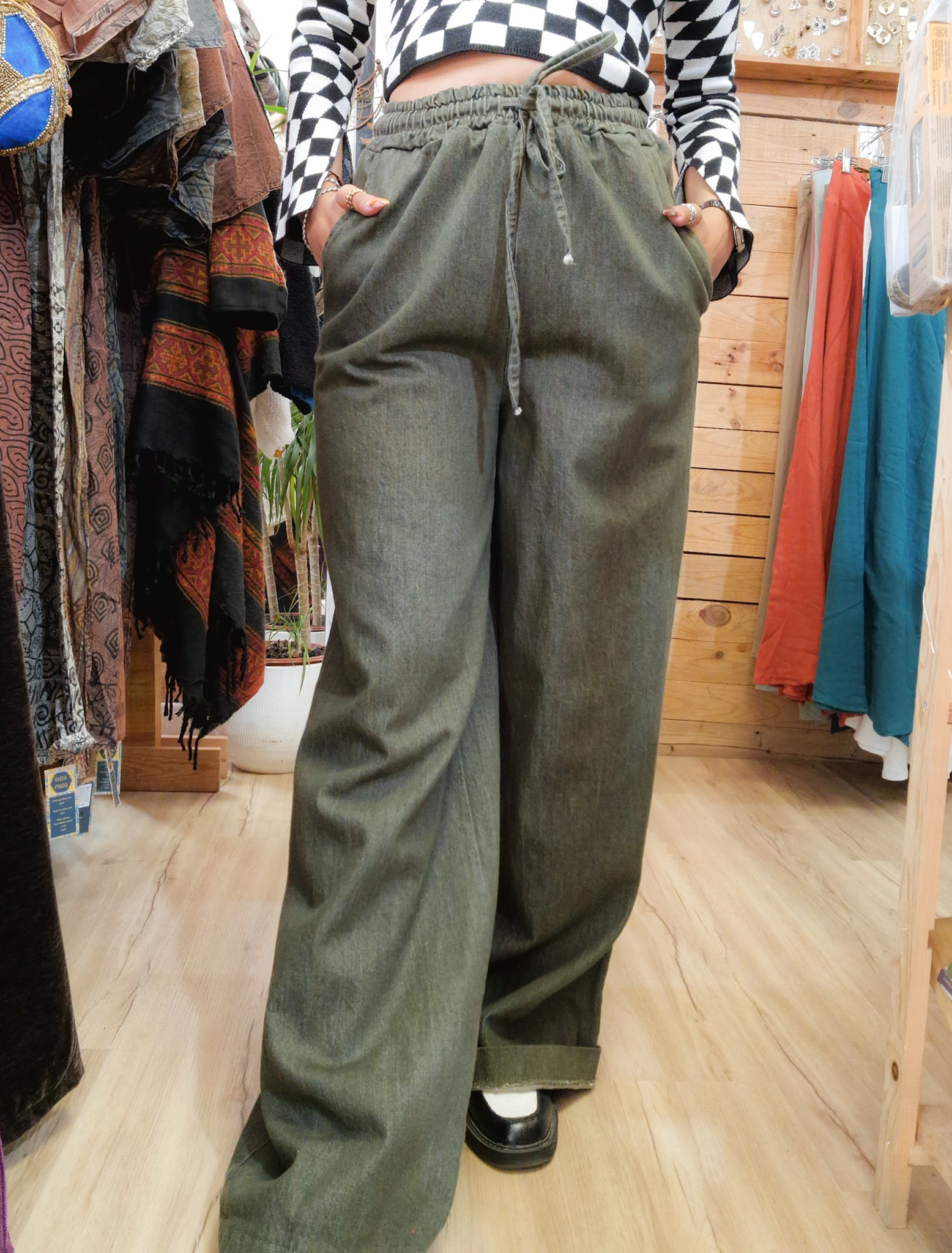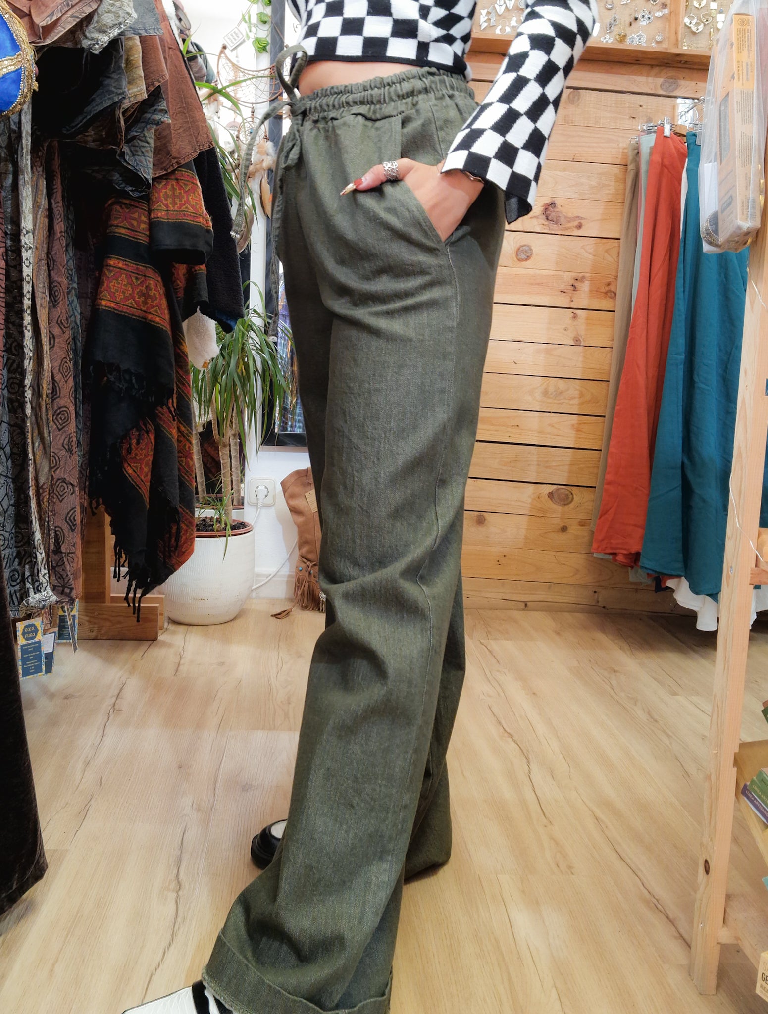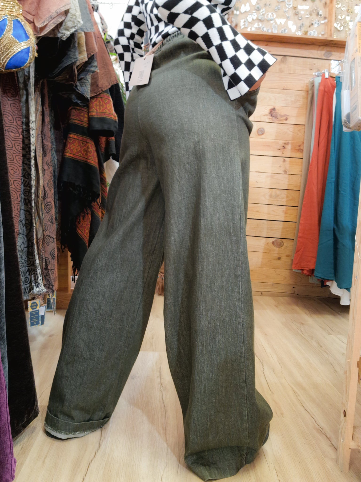 Pantalon en tissu denim taille unique, idéal pour les personnes portant du 38 au 40.