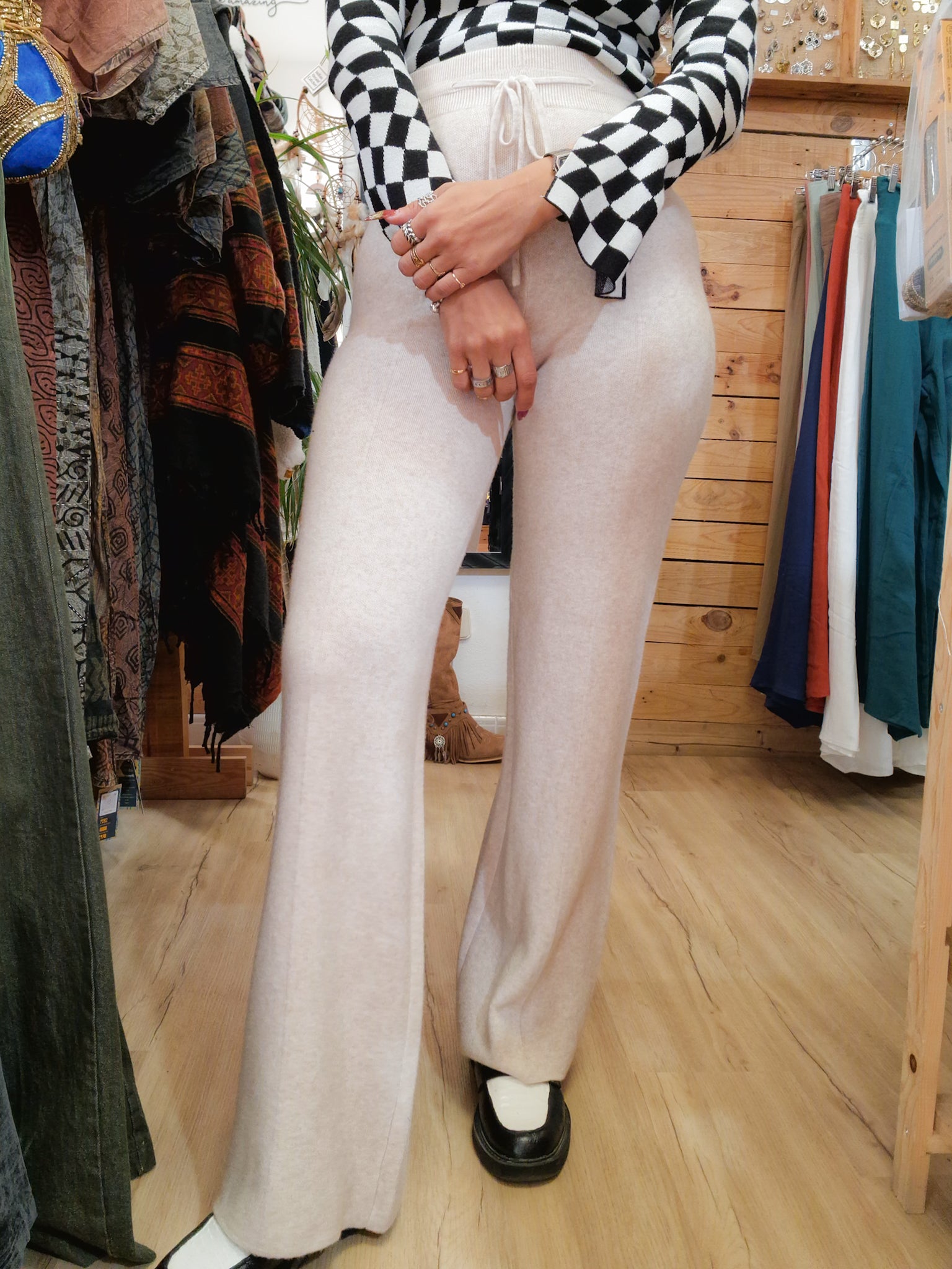 Pantalon en coton et viscose taille unique, idéal pour les personnes portant du 38 au 40.