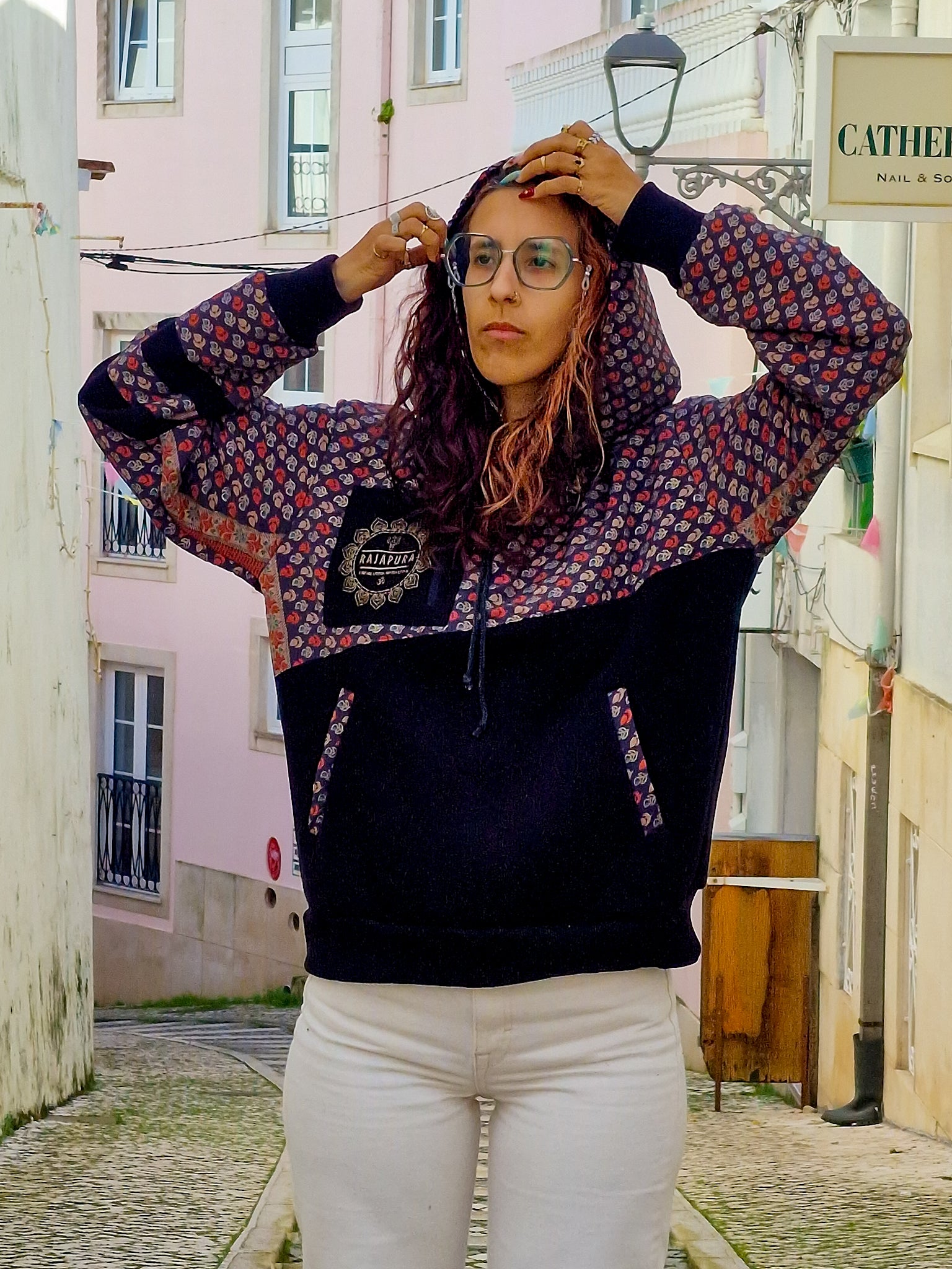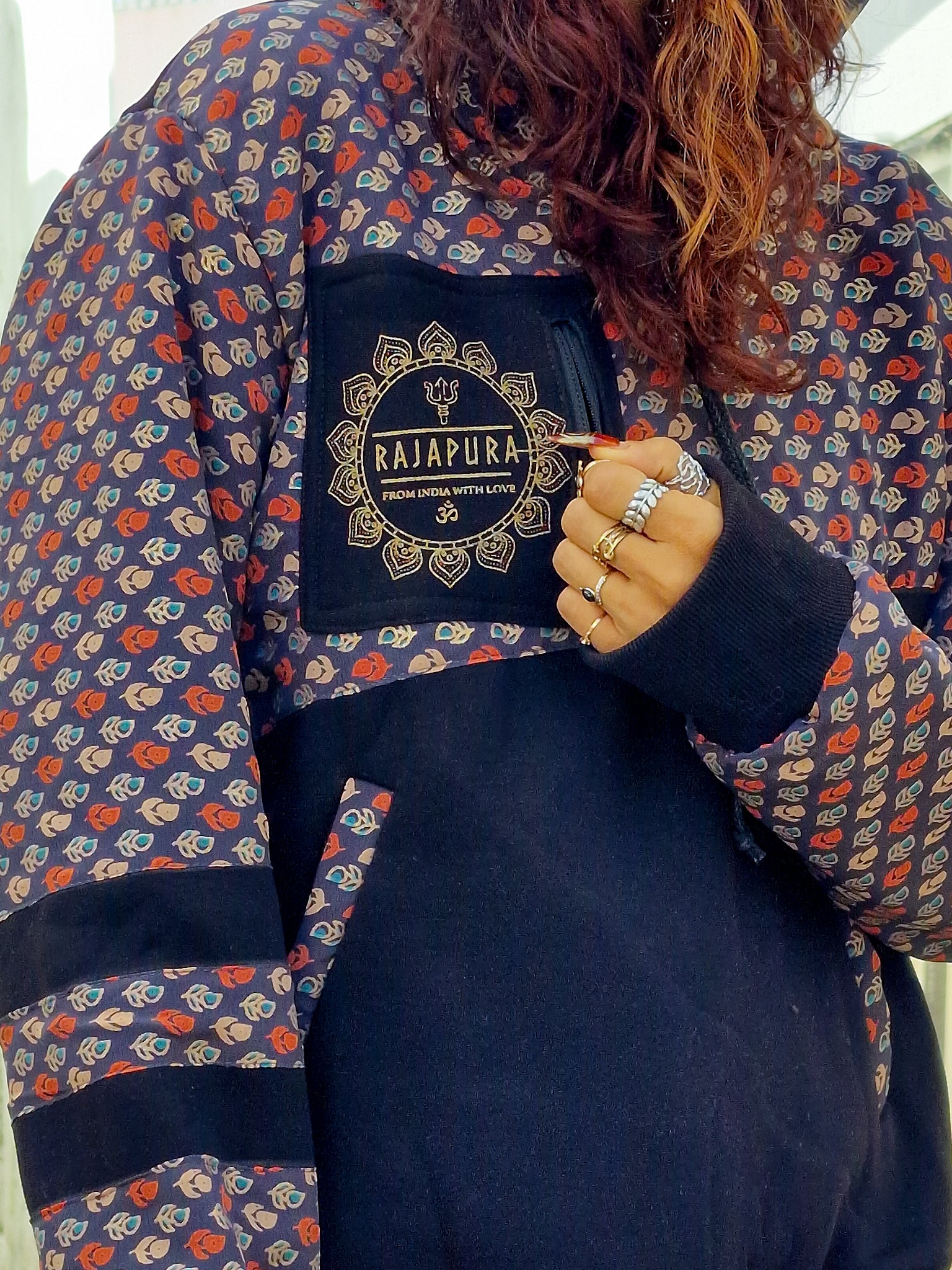 Conçu pour ceux qui vivent avec attitude et ne baissent jamais leur vibration, ce hoodie associe un coton confortable à des manches en sari recyclé, rendant chaque modèle absolument unique. Il n'en existe pas deux identiques !