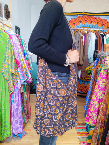 La Tote bag Étnica in cotone è una borsa artigianale realizzata con la tradizionale tecnica della stampa a blocchi, un metodo ancestrale di stampa manuale che utilizza blocchi di legno intagliati a mano.