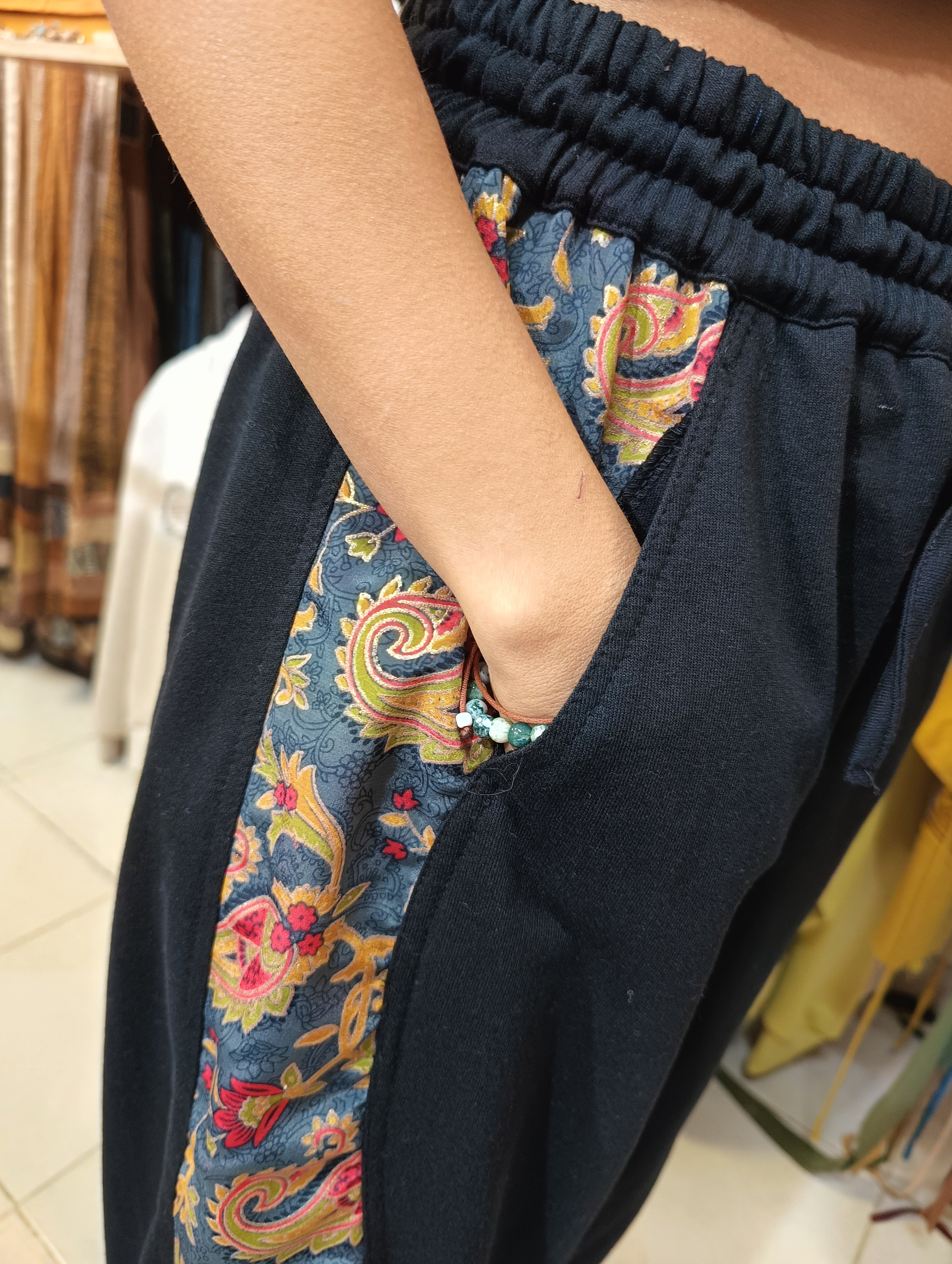 I nostri pantaloni Funky sono realizzati in stile balloon, in cotone morbido e con dettagli laterali in sari riciclati, rendendo ogni modello unico e pieno di personalità. Trasmettono una sensazione di spirito libero, comfort e identità!