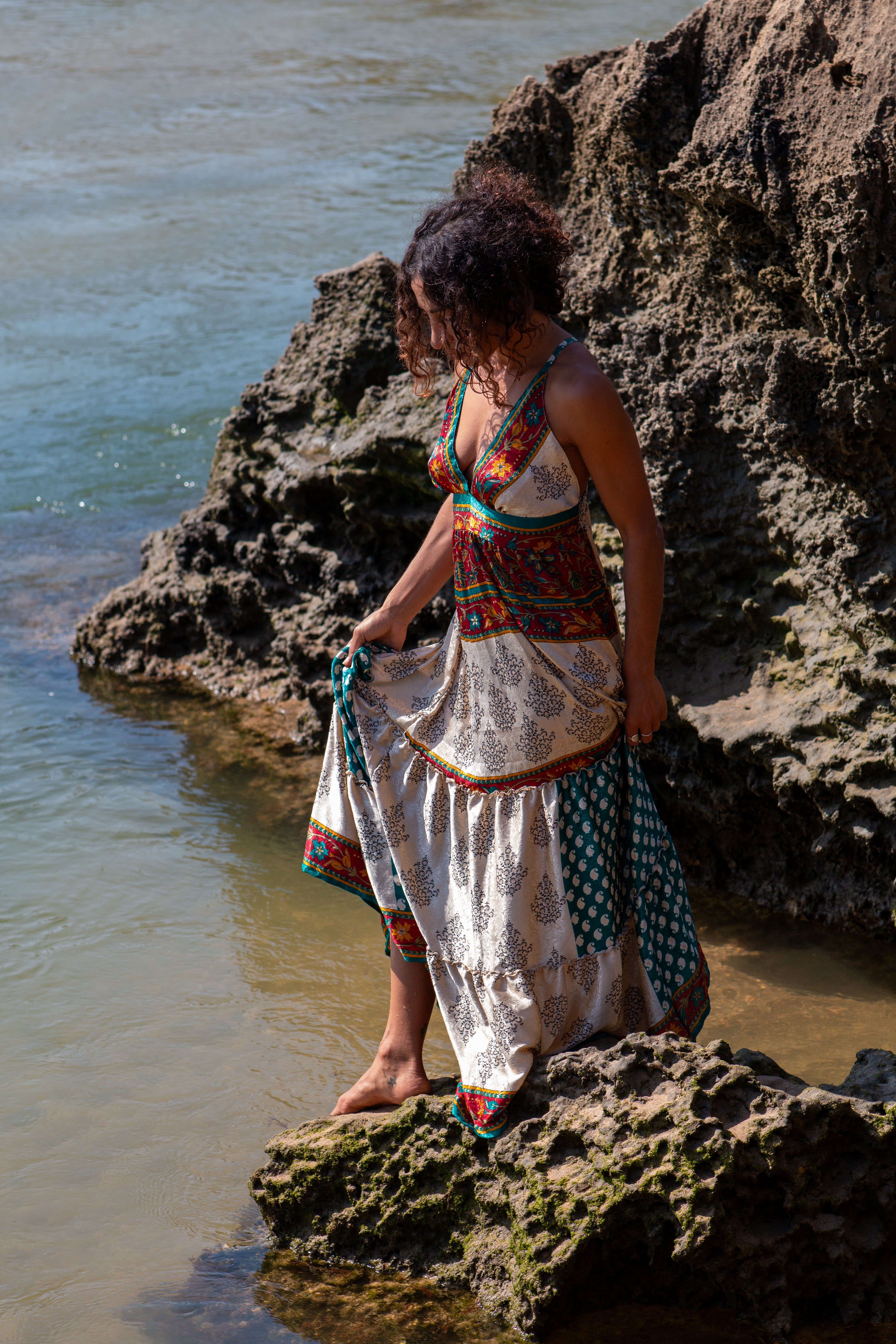 Ogni Vestito Margherita è una creazione unica, nata dal riutilizzo creativo di sari autentici.