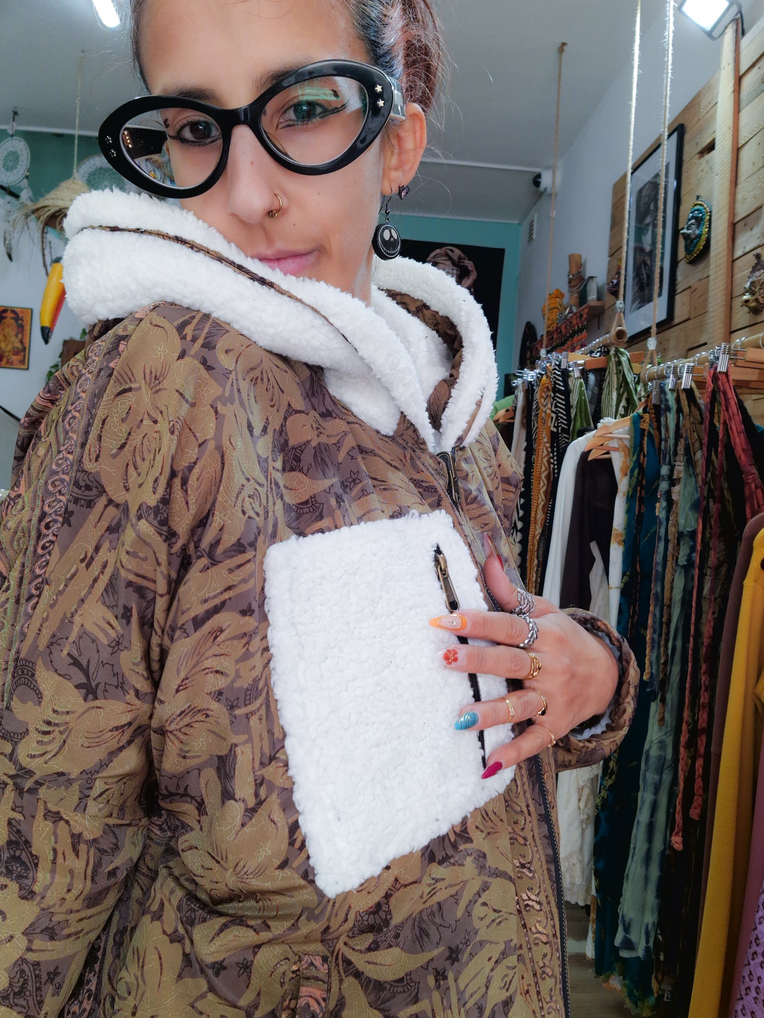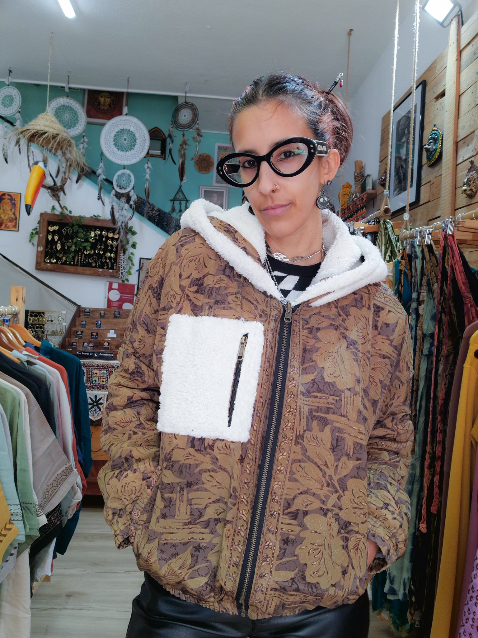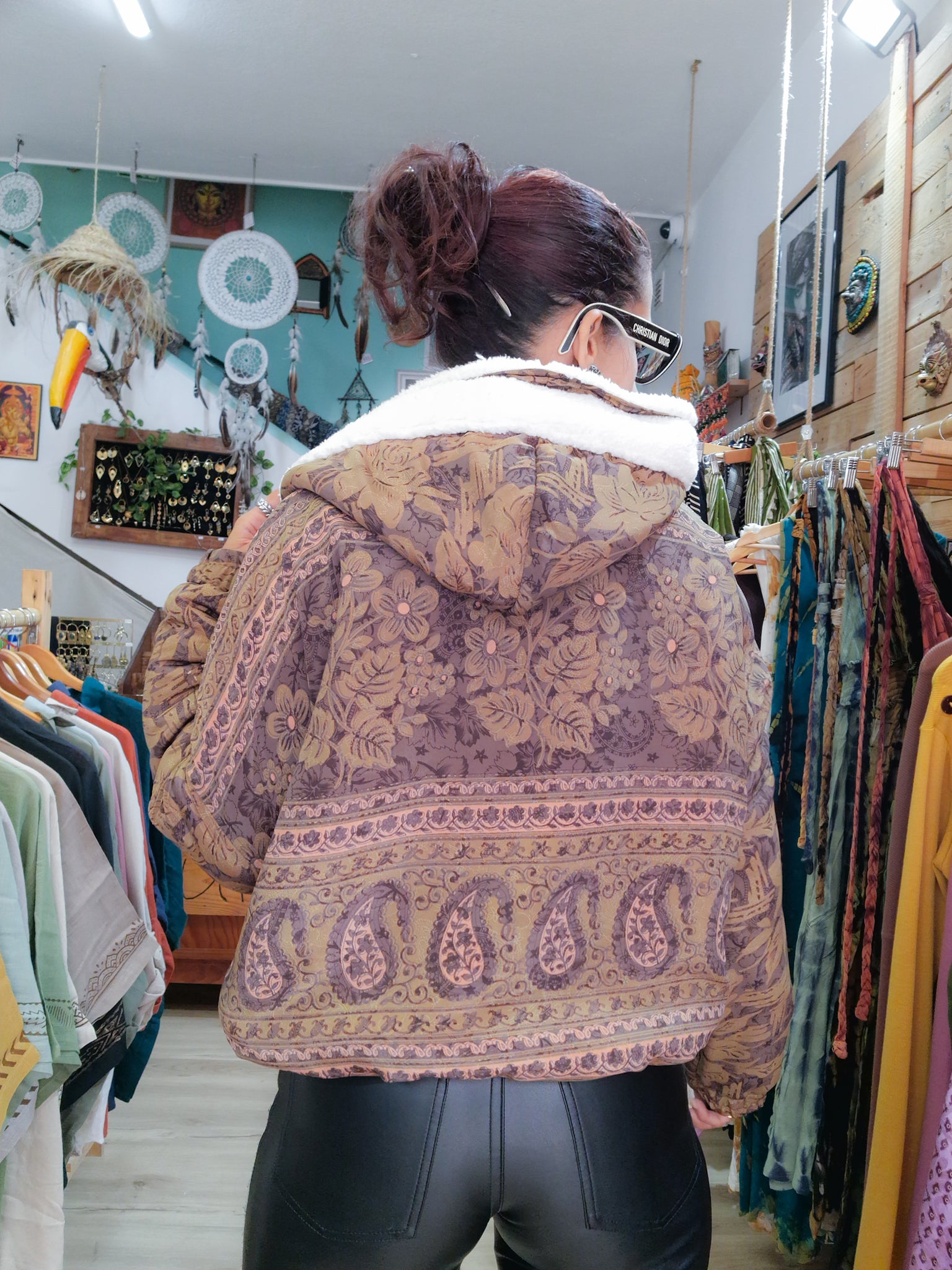 Questo cappotto è reversibile, un giorno puoi indossarlo con la parte colorata del sari verso l’esterno e un altro giorno puoi usare la sua parte più neutra!