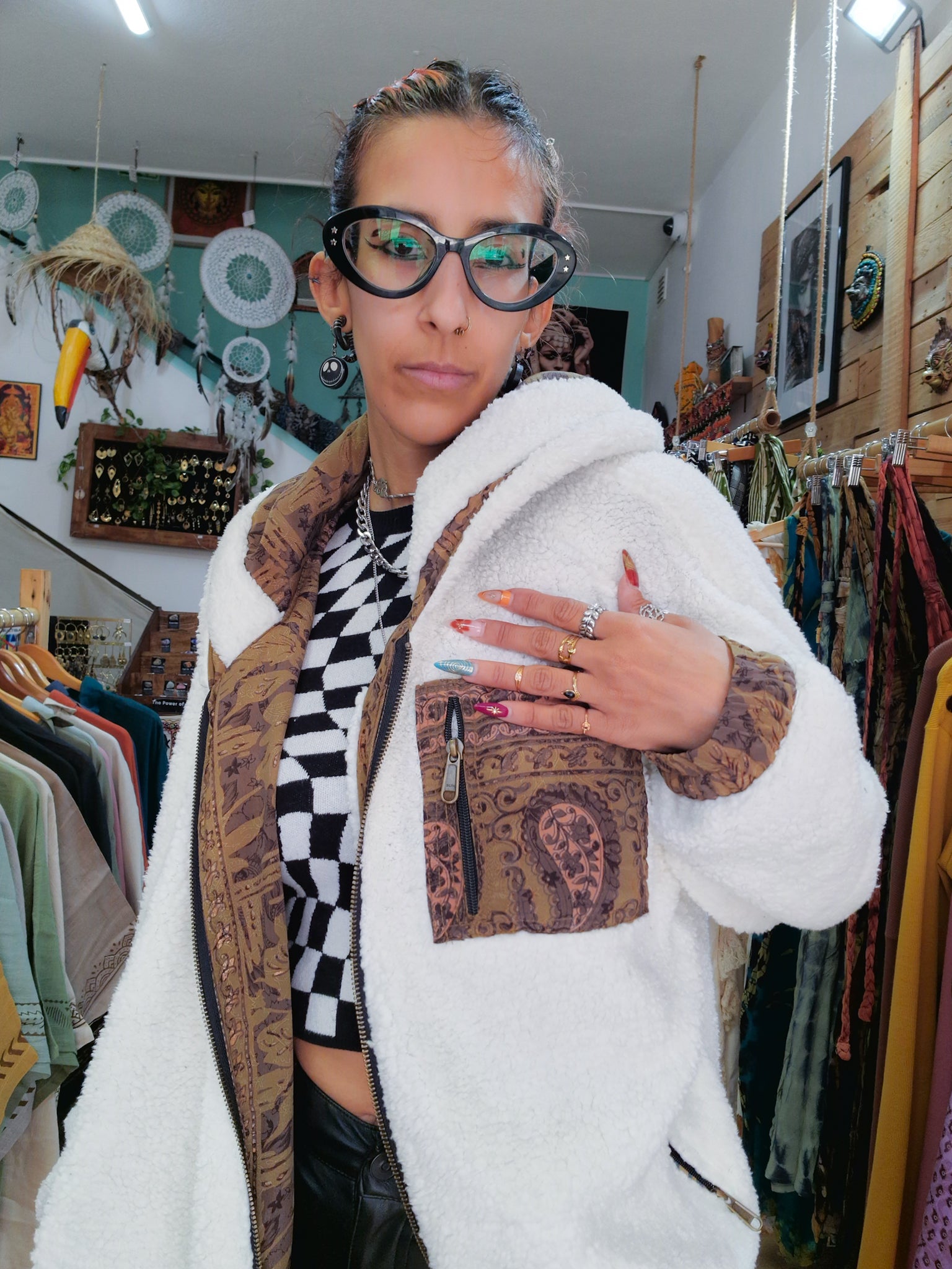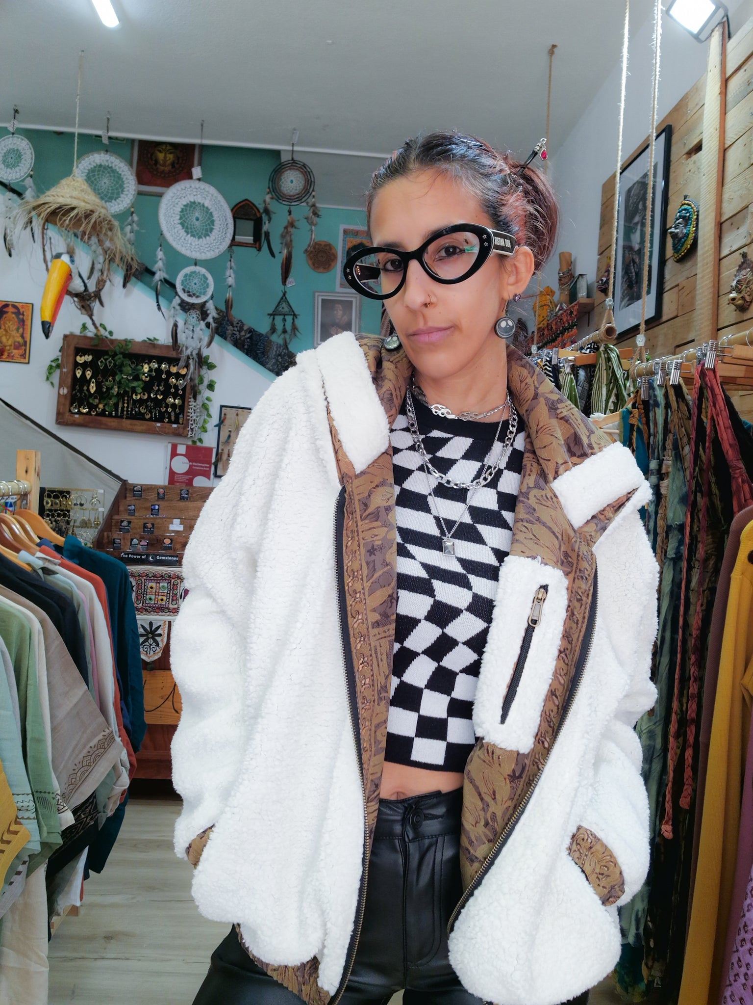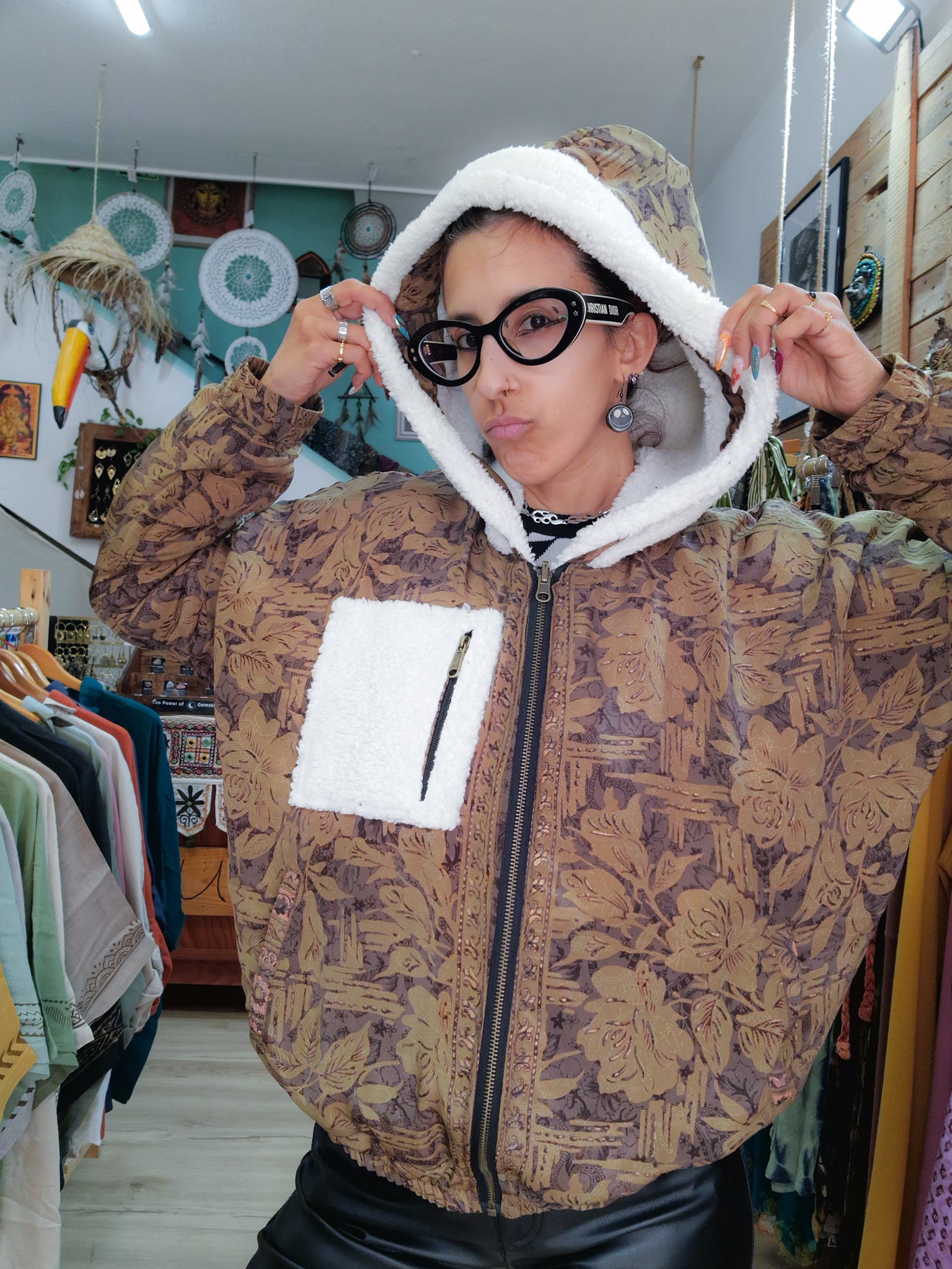 Questo cappotto è reversibile, un giorno puoi indossarlo con la parte colorata del sari verso l’esterno e un altro giorno puoi usare la sua parte più neutra!