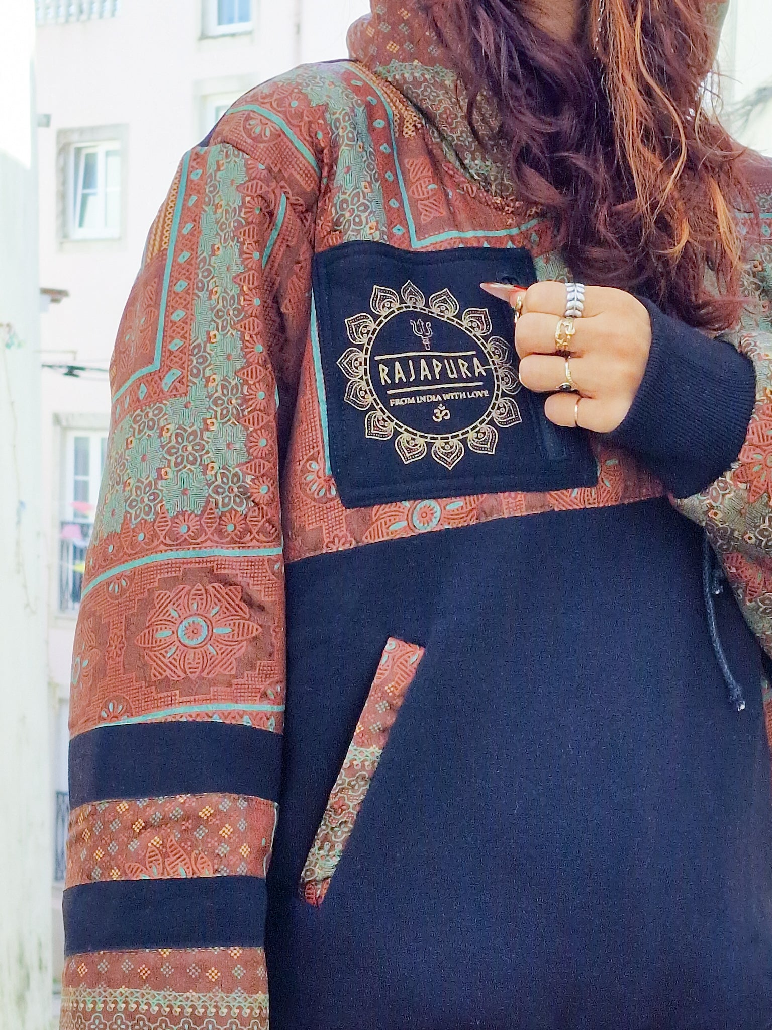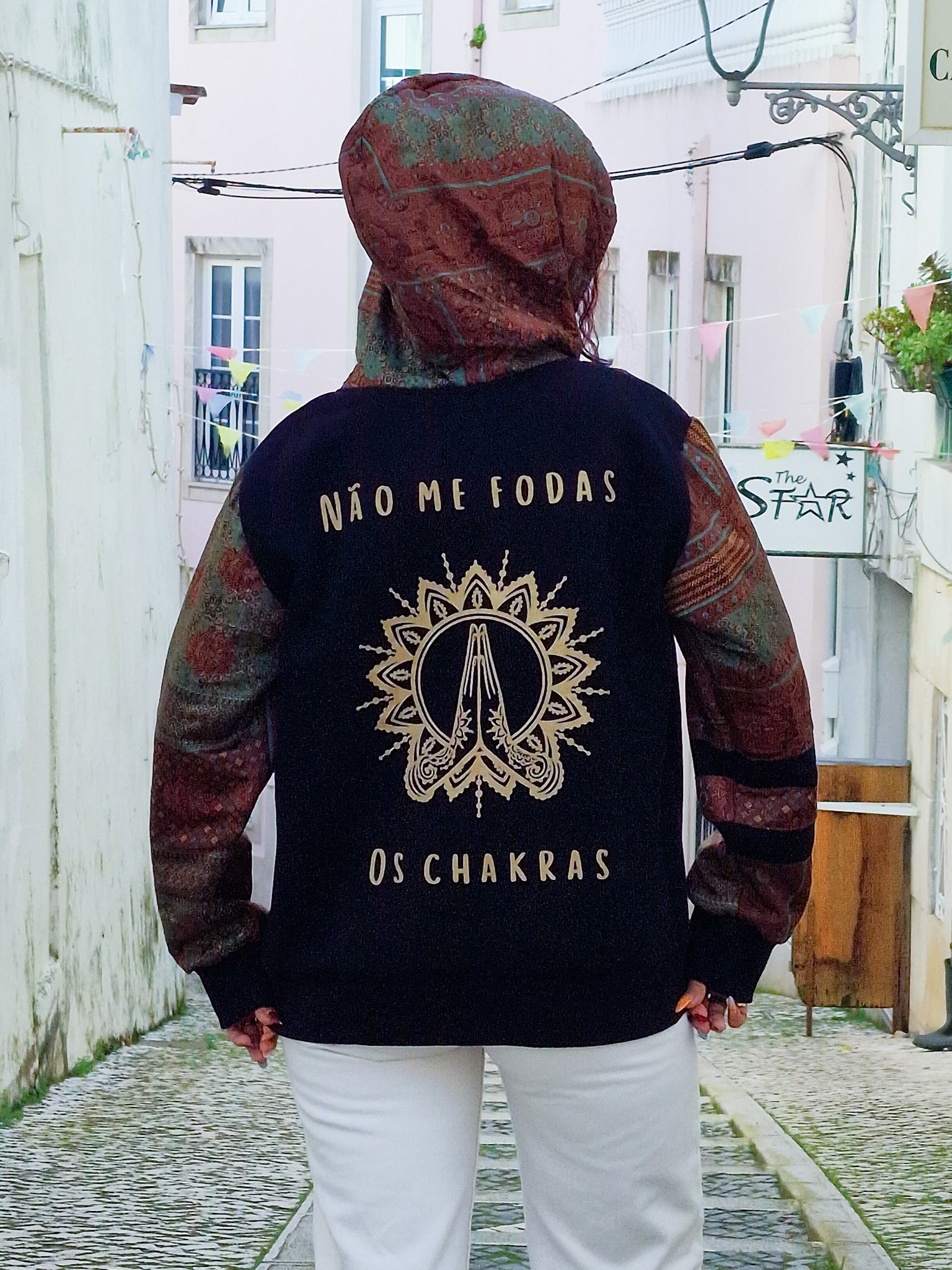 Creata per chi vive con atteggiamento e non abbassa mai la vibrazione, questa felpa unisce cotone confortevole a maniche in Sari riciclato, rendendo ogni modello assolutamente unico. Non ce ne sono due uguali!
