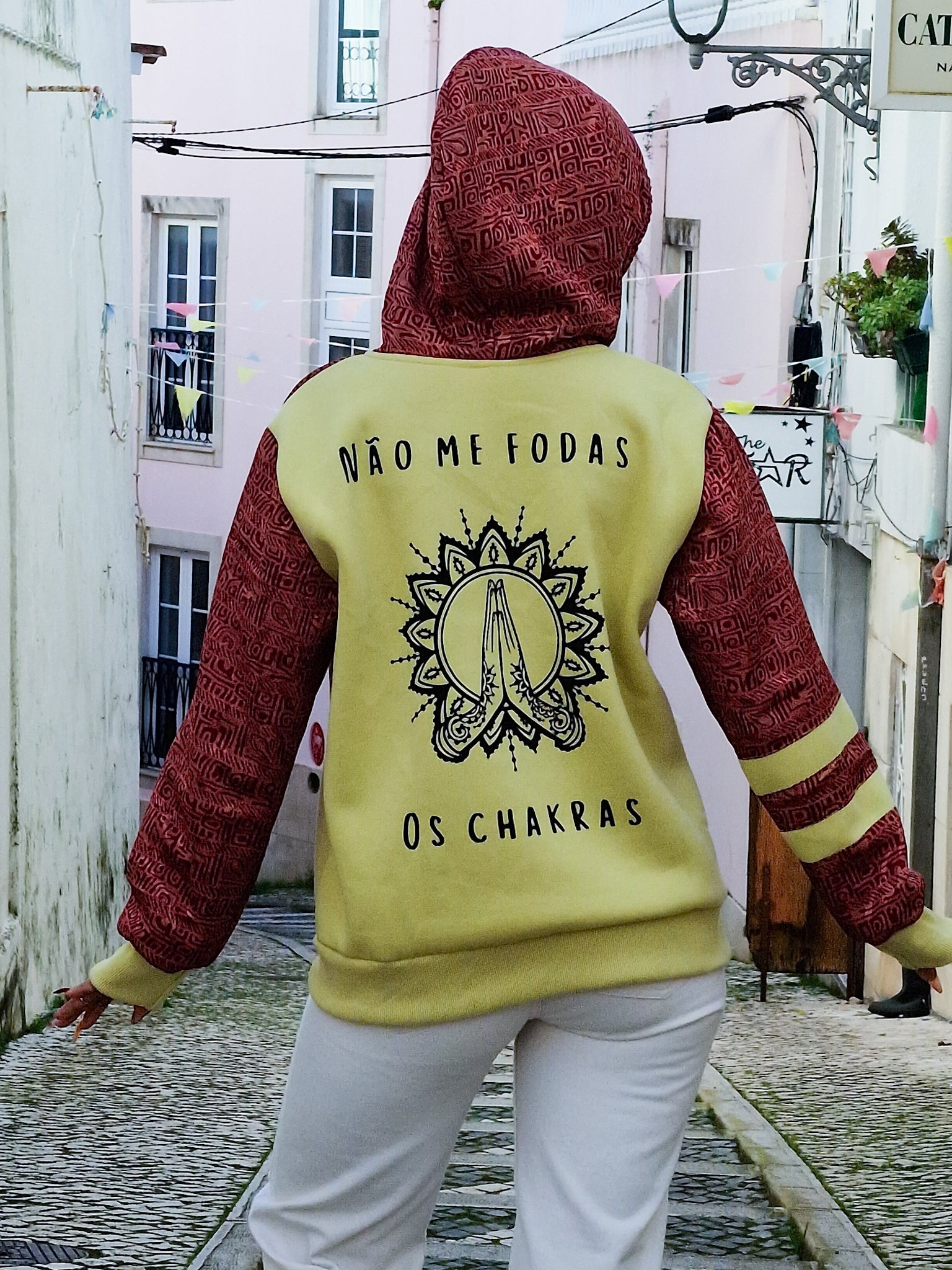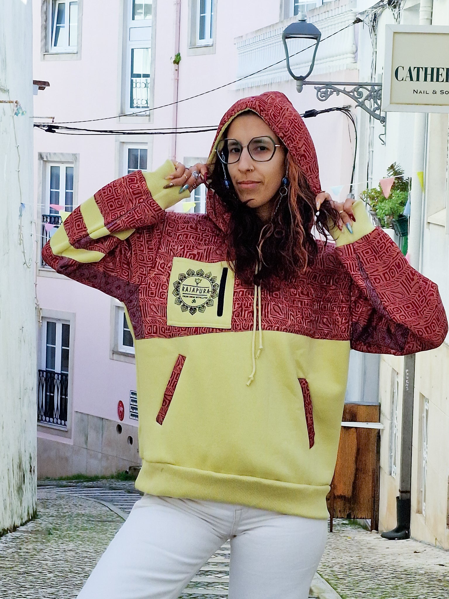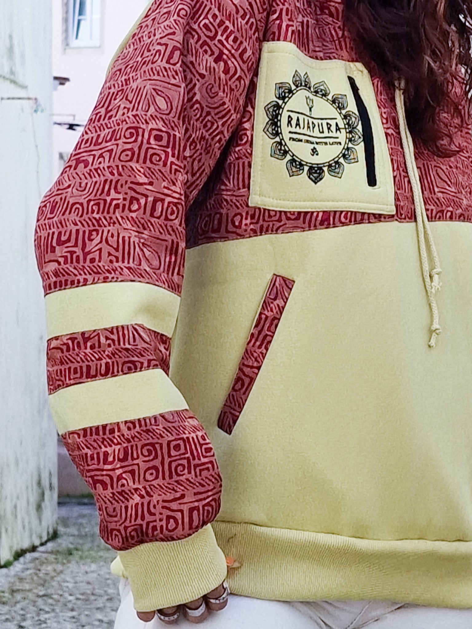 Creata per chi vive con atteggiamento e non abbassa mai la vibrazione, questa felpa unisce cotone confortevole a maniche in Sari riciclato, rendendo ogni modello assolutamente unico. Non ce ne sono due uguali!