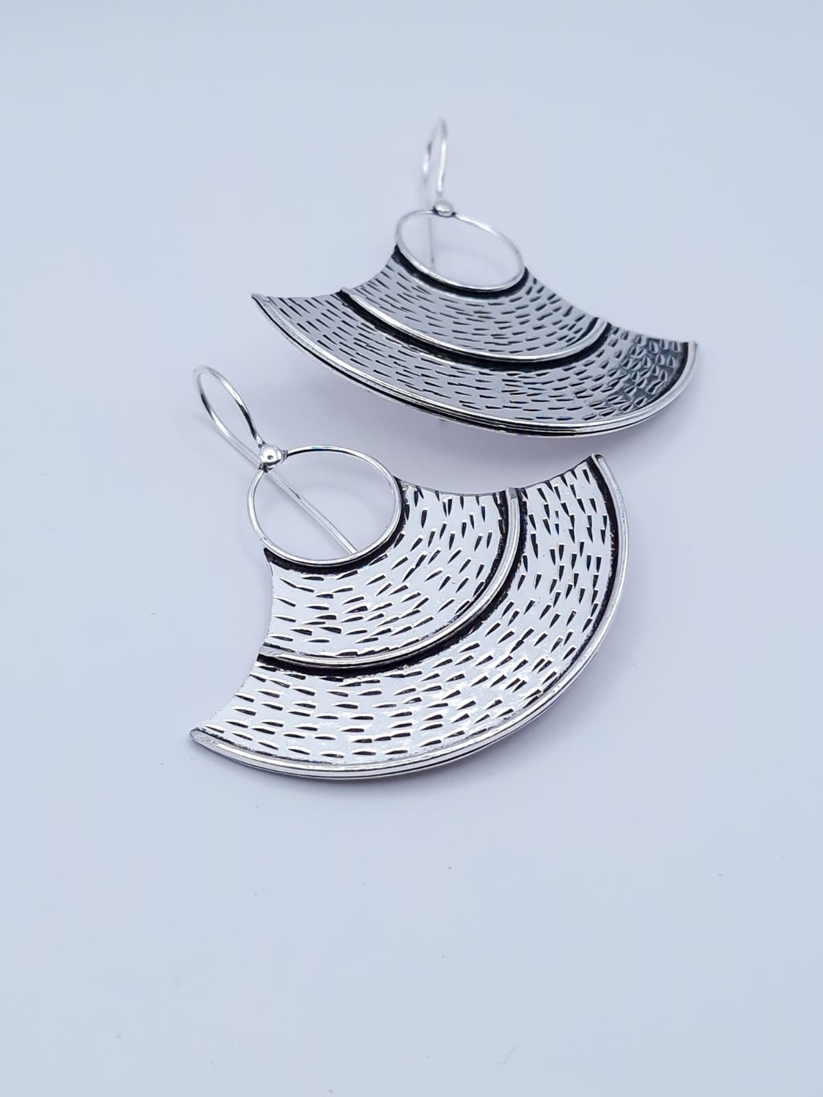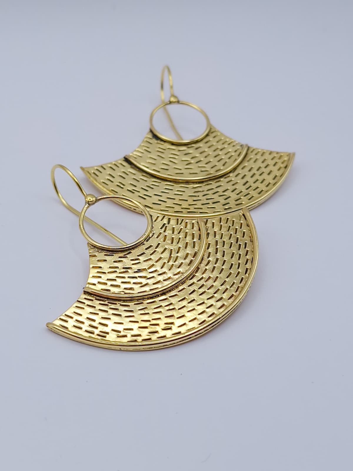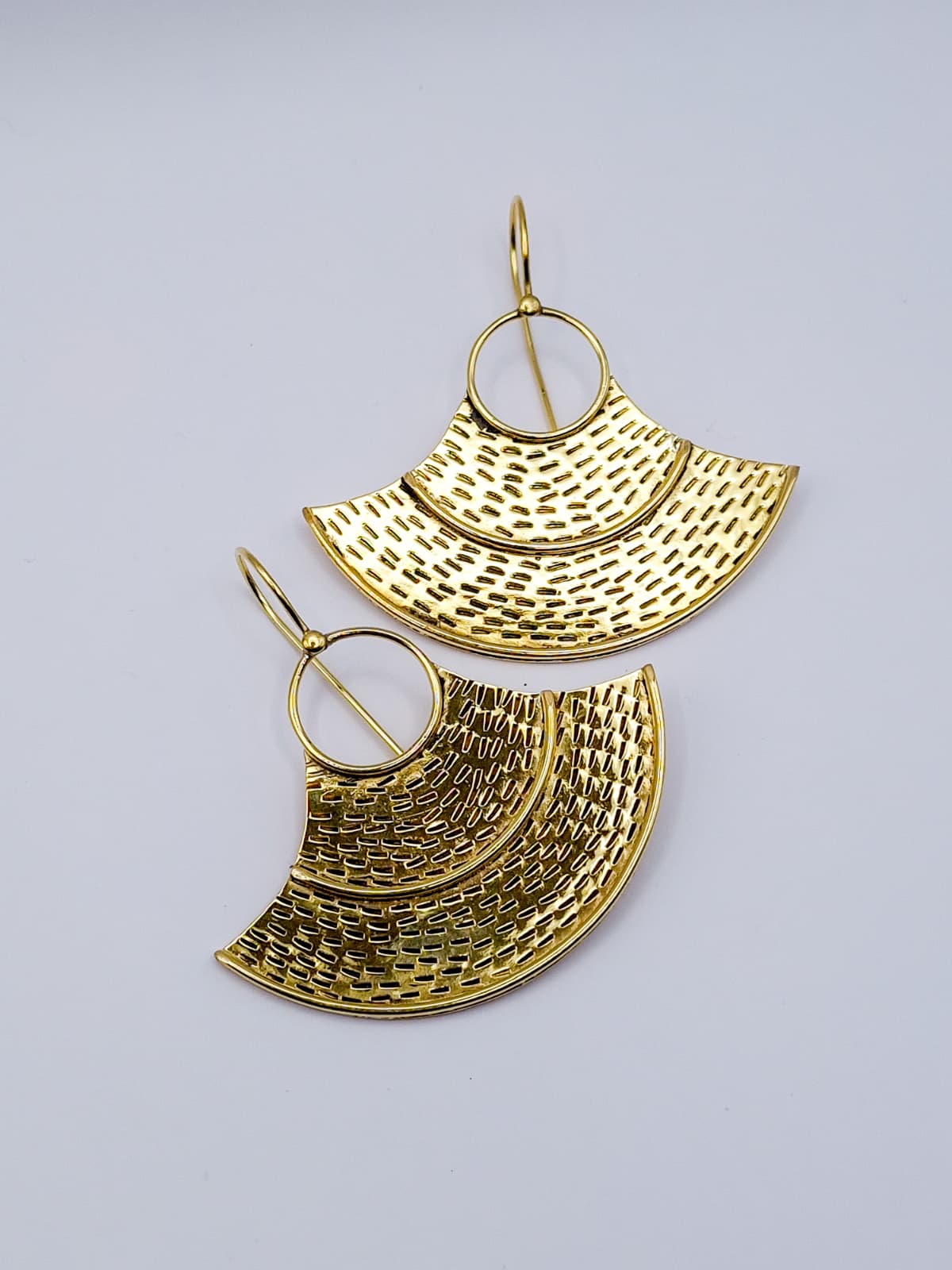Brincos com inspiração étnica, com um design contemporâneo e texturas marcantes que conferem personalidade e elegância.