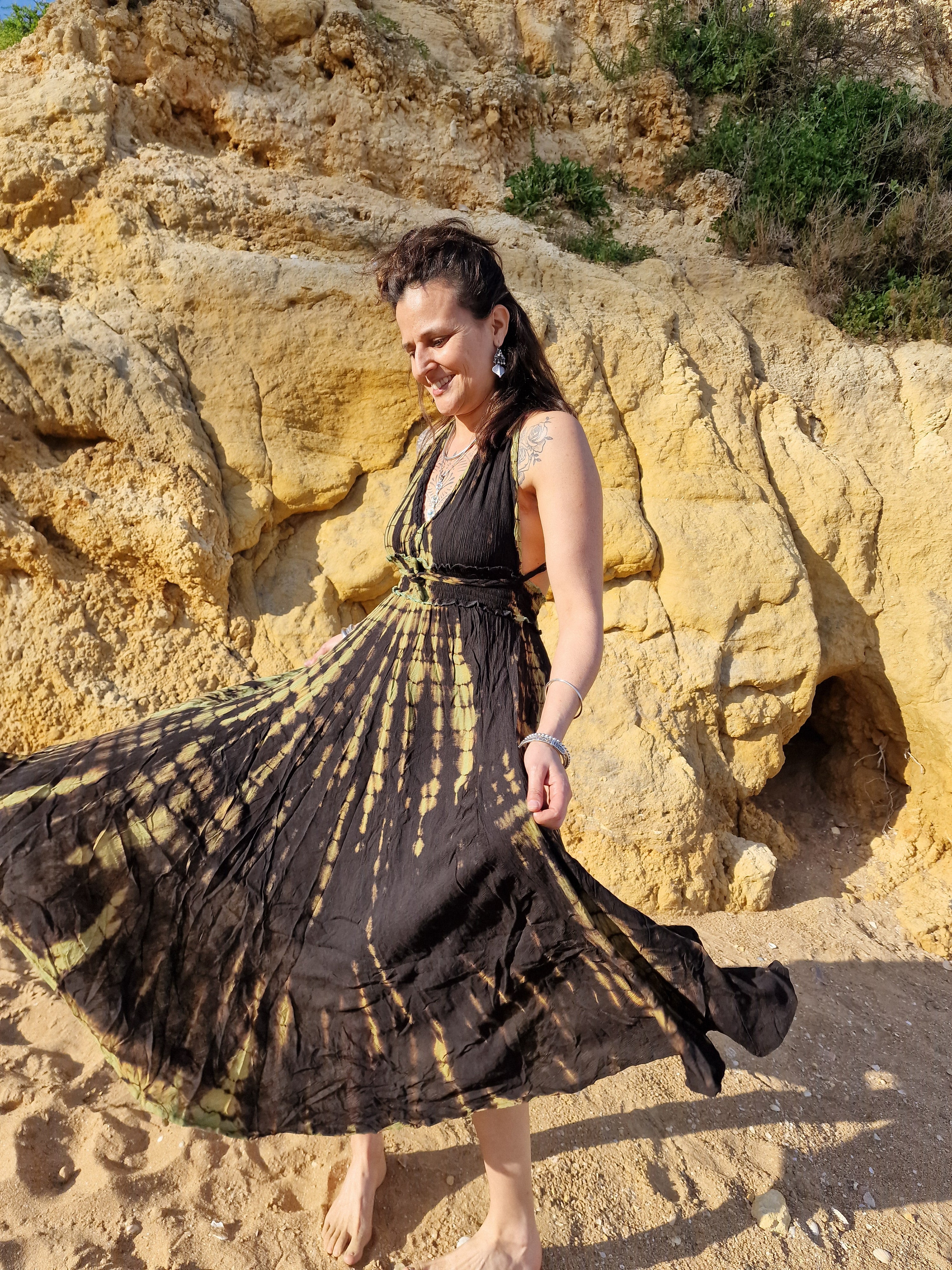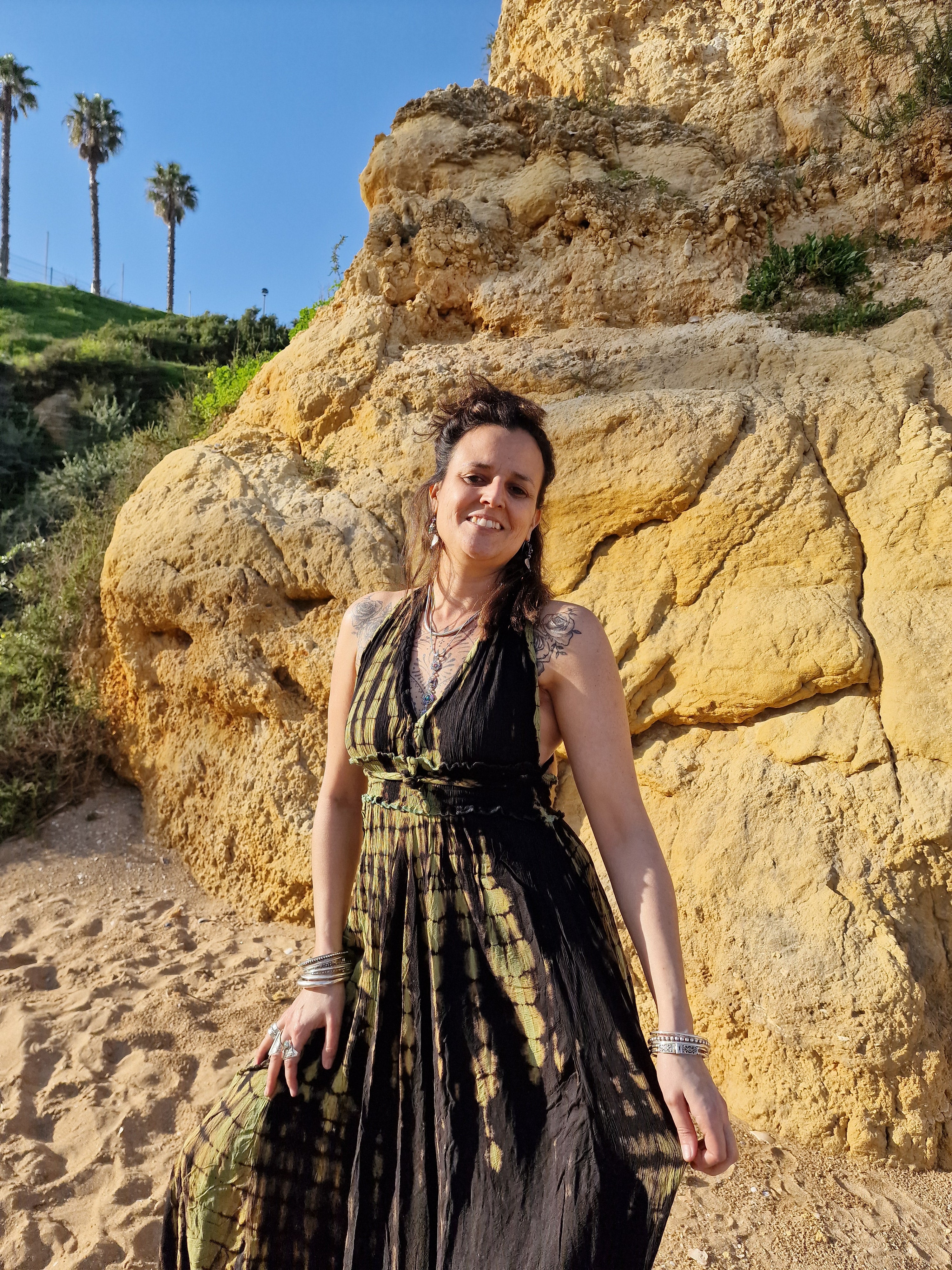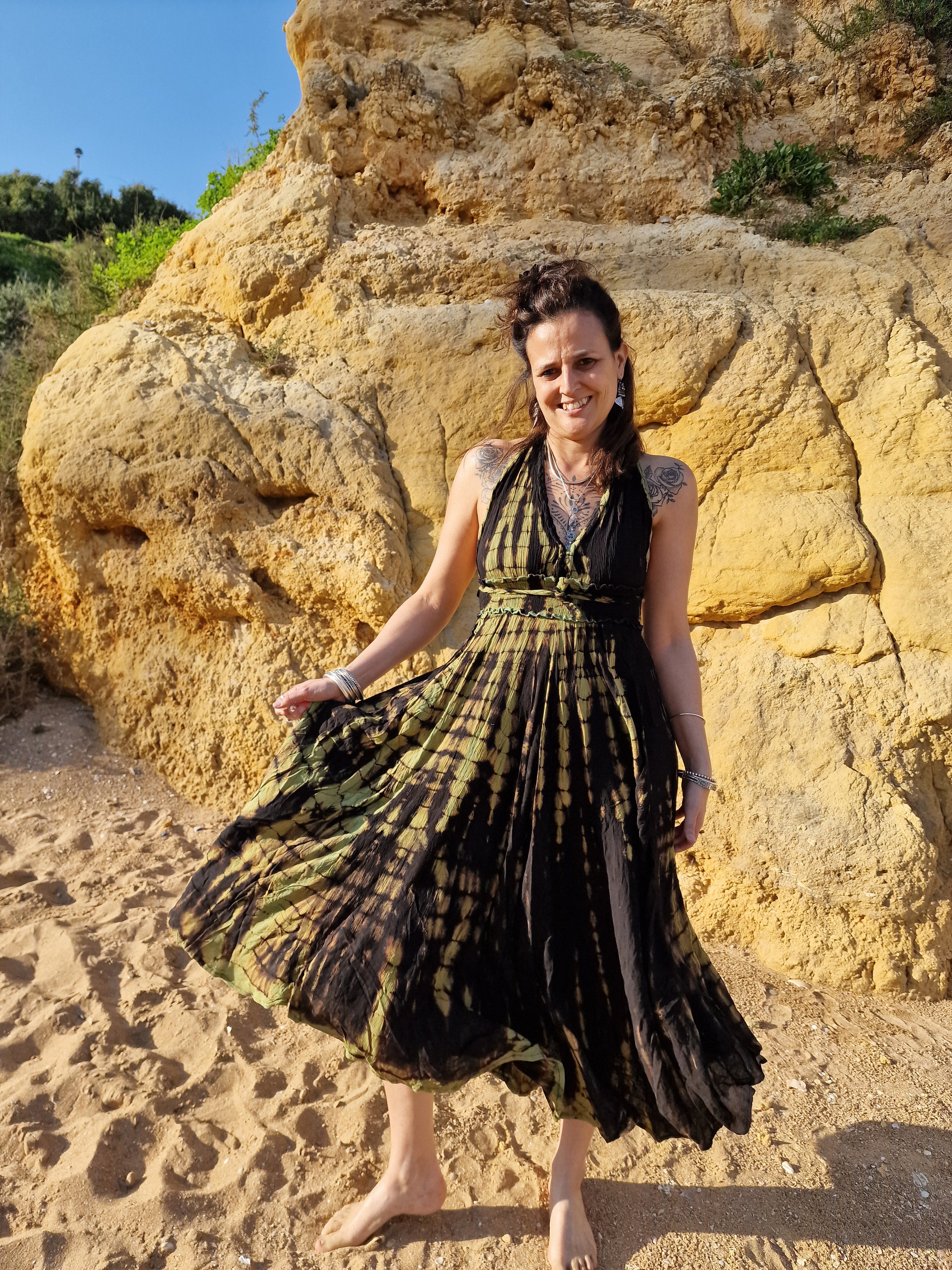 Com silhueta solta e feminina, o vestido Neela é perfeito para dias de verão, passeios junto ao mar ou momentos em que queres vestir algo leve, autêntico e cheio de personalidade.